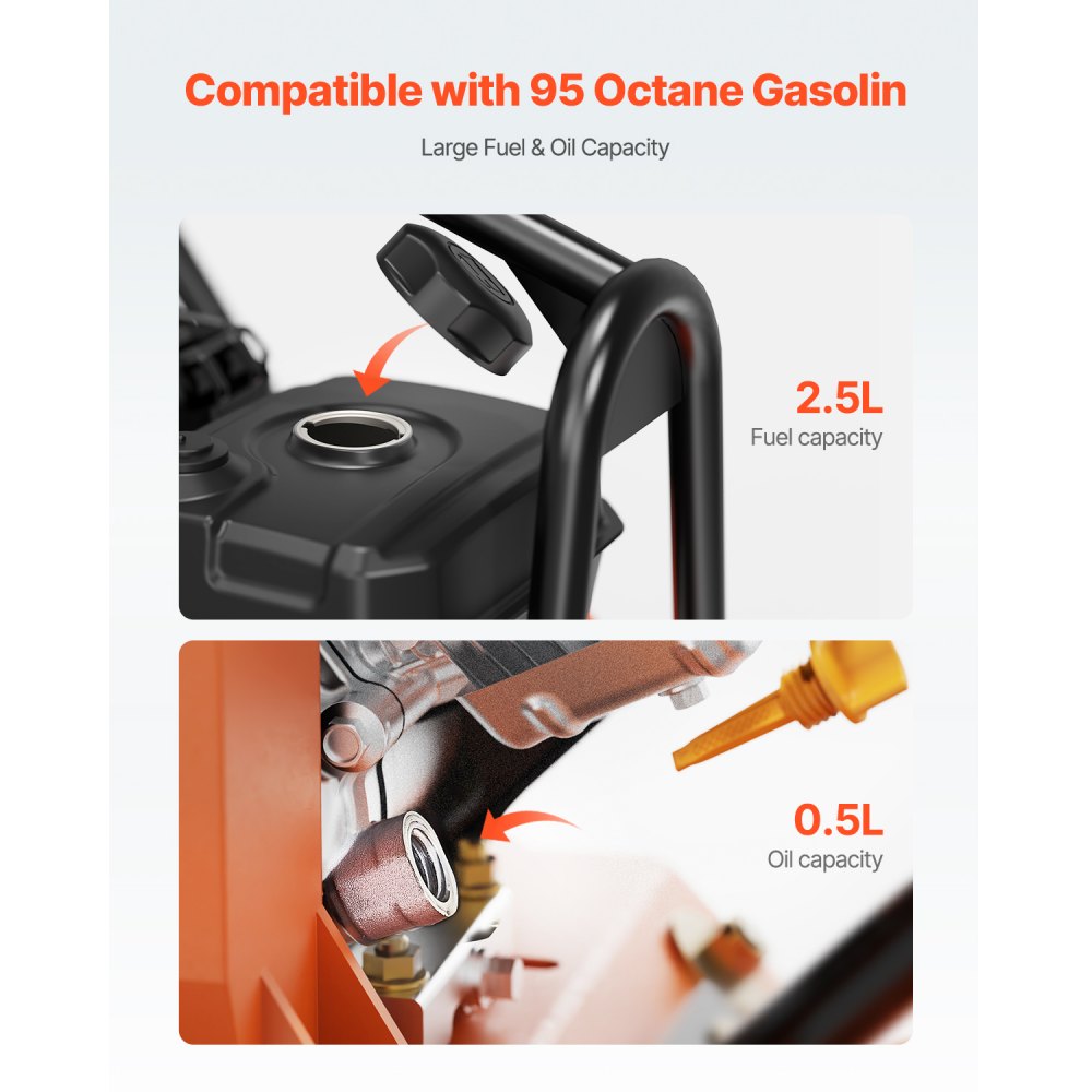 •Large Capacity Fuel Tank of 0.5 L oil and 2.5 L fuel.