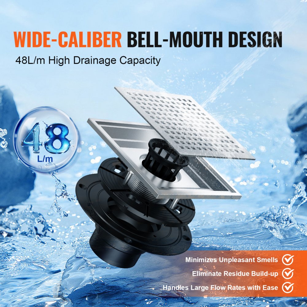 The installation process is simplified by its leveling feet, which ensure a secure fit and eliminate water pooling concerns.