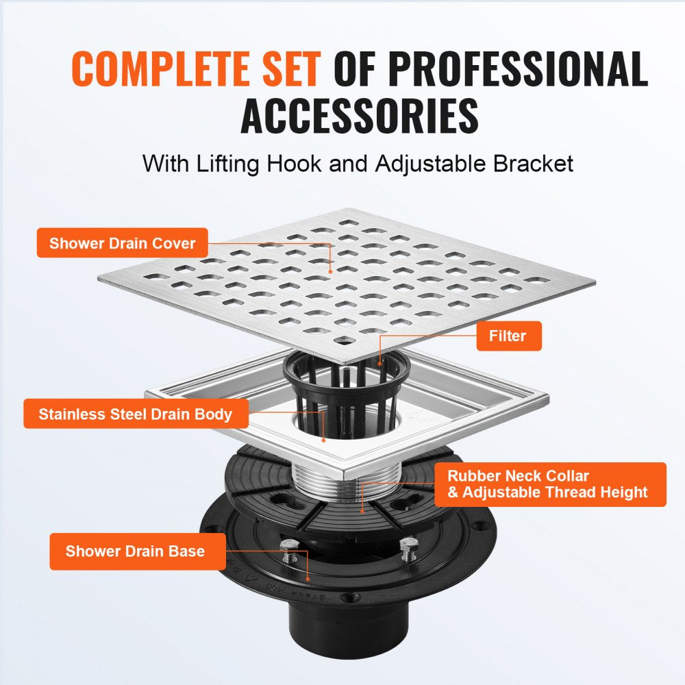 Upgrade your bathroom with this 16-inch linear shower drain, crafted from brushed stainless steel for a contemporary touch Its modern design not only enhances your decor but also features a square patterned grate that promotes efficient water drainage, keeping your shower area safe and dry Cleaning is a breeze with the easily removable grate This versatile drain is suitable for both residential and commercial spaces, offering resistance to rust and corrosion while complementing various styles.