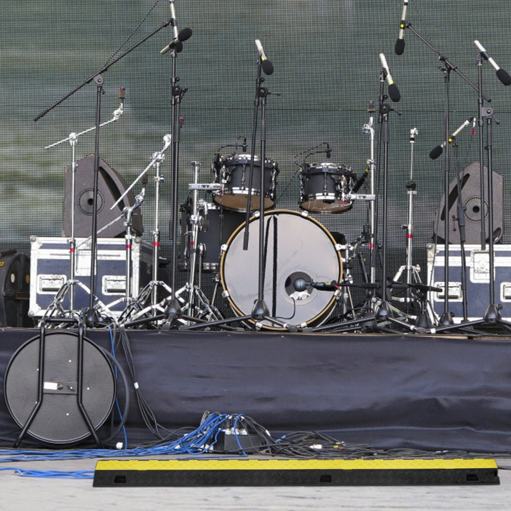 Introducing the VEVOR 2 Channel Cable Protector Ramp, engineered to support heavy loads of up to 22,000 lbs, making it an essential tool for a variety of work settings This ramp features two channels that neatly organize and protect multiple cables, ensuring they remain secure and out of the way Its bright yellow and black color scheme not only enhances visibility but also helps minimize tripping risks while safeguarding cables from potential damage.