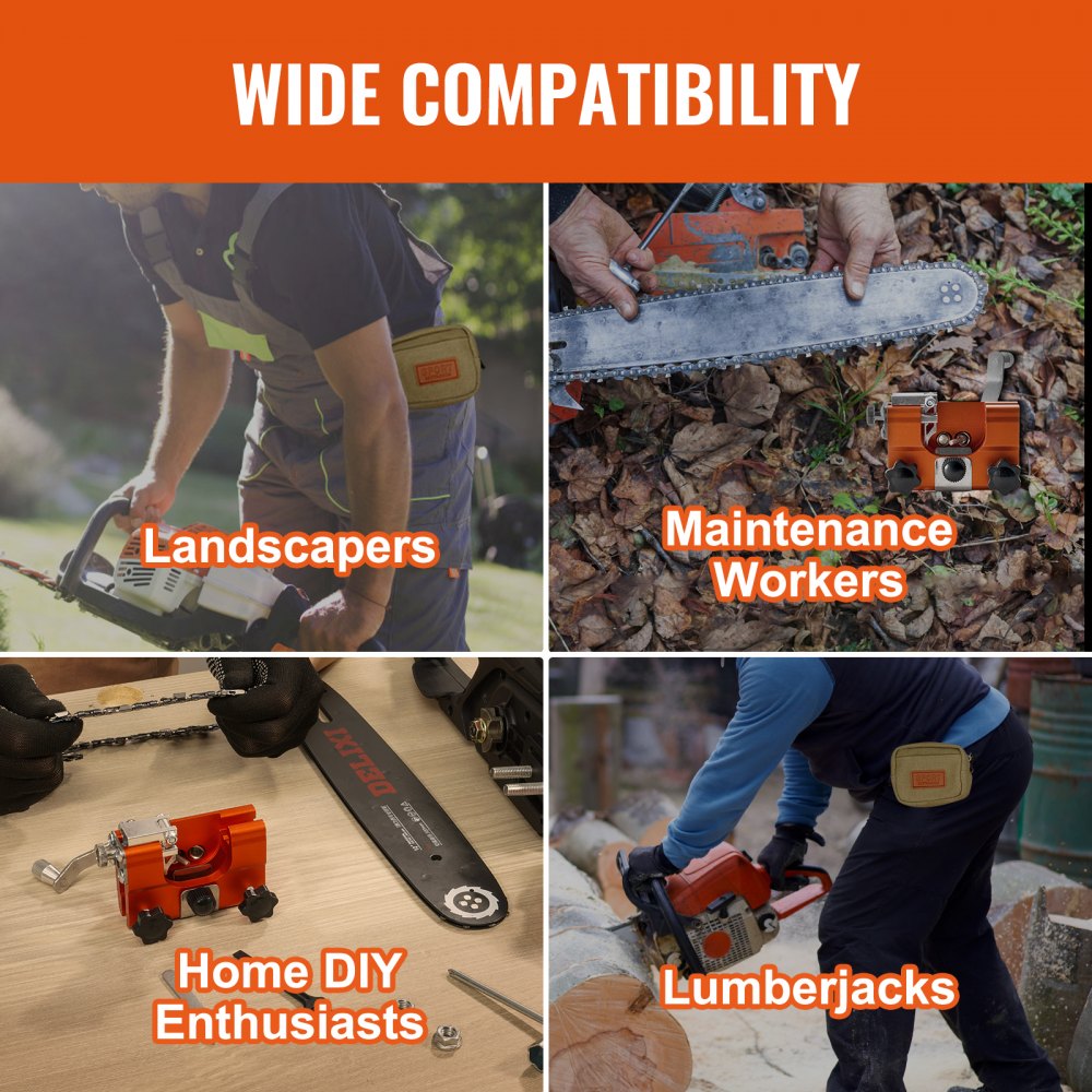 Elevate your chainsaw maintenance with the VEVOR chainsaw sharpener, equipped with four sharpening heads (35mm and 5mm) This innovative tool is compatible with chainsaws ranging from 4 inches to 22 inches, offering efficient sharpening without the need to disassemble the chain Experience precise and effortless sharpening that enhances the performance of any type of chainsaw chain