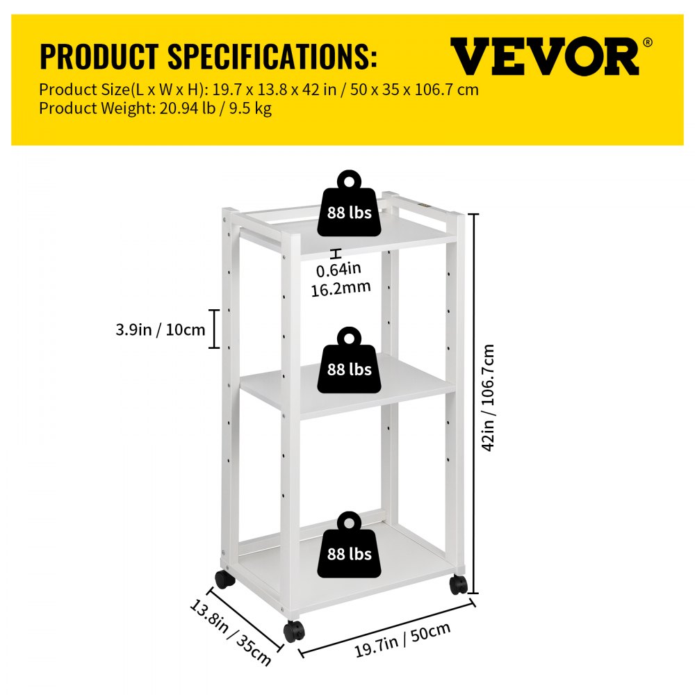 Transform your workspace with the VEVOR printer stand, designed to create a tidy environment by reducing desktop clutter This stand offers ample storage to arrange your essential items according to your personal preferences Its adjustable height feature allows for easy accommodation of larger devices, making it versatile for any office setup Equipped with four lockable wheels, you can move the stand effortlessly when needed or keep it securely in place.