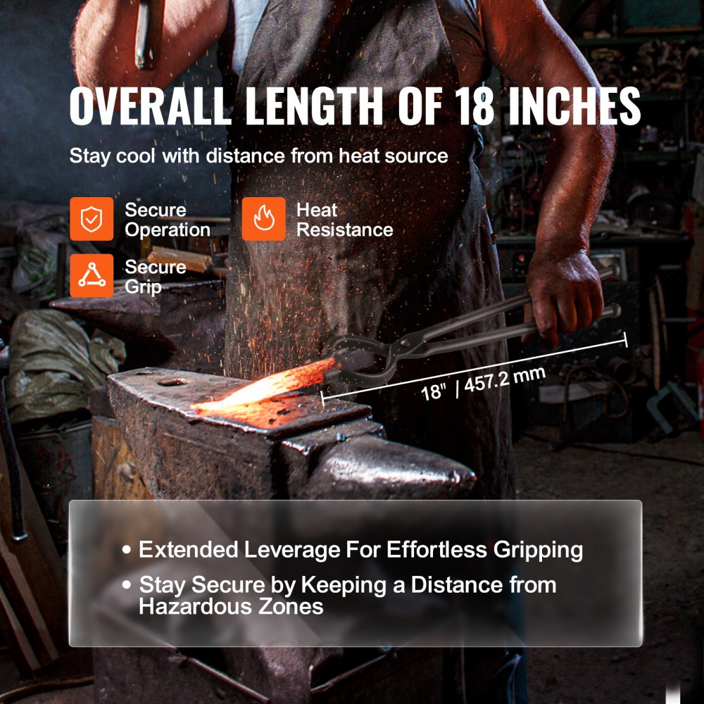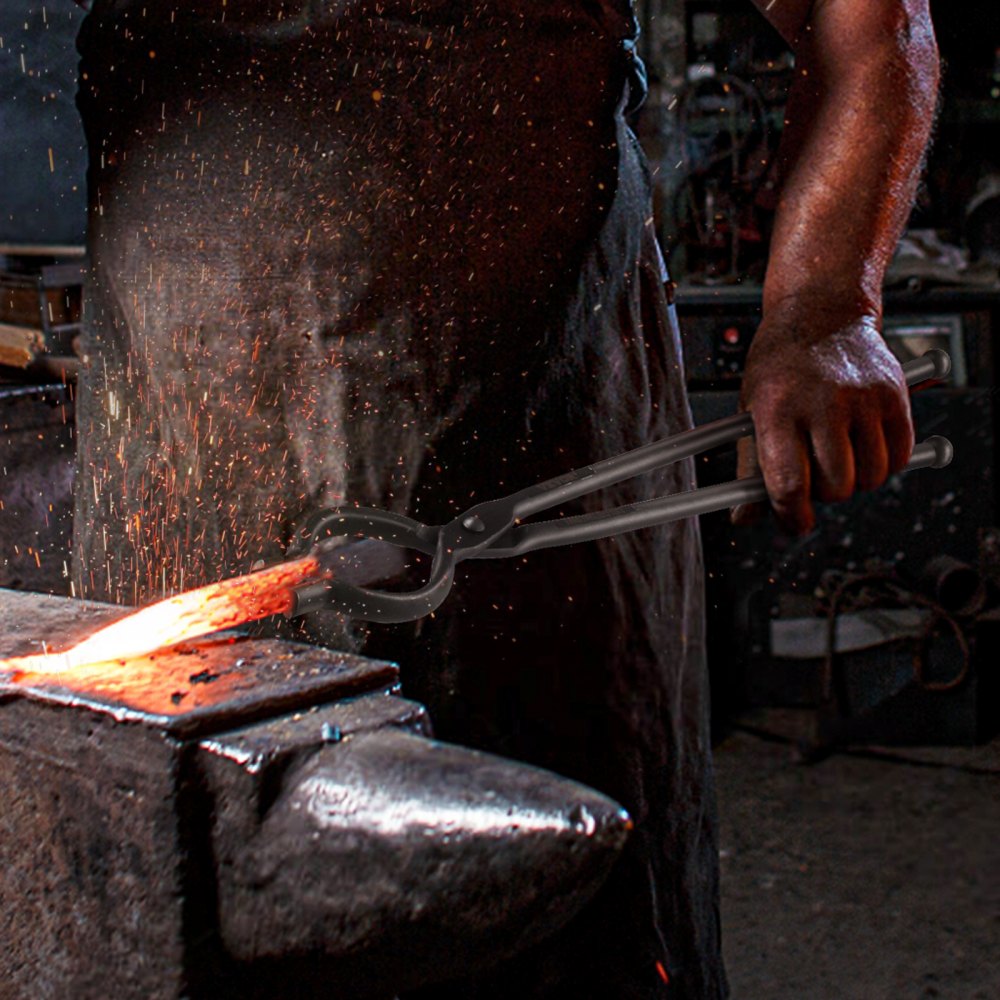 Enhance your blacksmithing skills with the VEVOR blacksmith tongs, perfect for both beginners and experienced craftsmen Constructed from premium carbon steel, these tongs are built to withstand the rigors of frequent use in your workshop Available in three versatile designs—V-bit bolt tongs, wolf jaw tongs, and Z V-bit tongs—these tools are ideal for managing a variety of projects The inclusion of A3 steel rivets enhances their stability, making them a reliable choice for your forging needs.