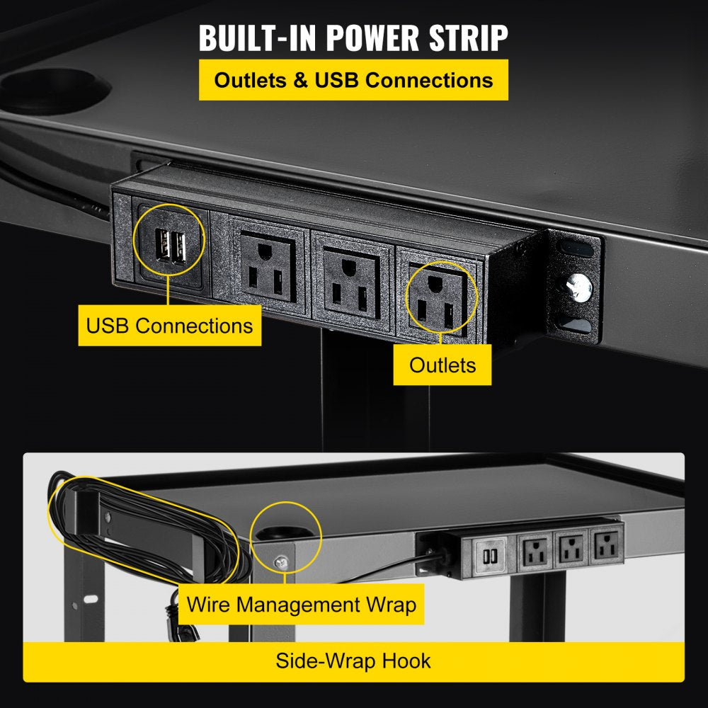 •Includes a built-in power strip with outlets and USB connections.