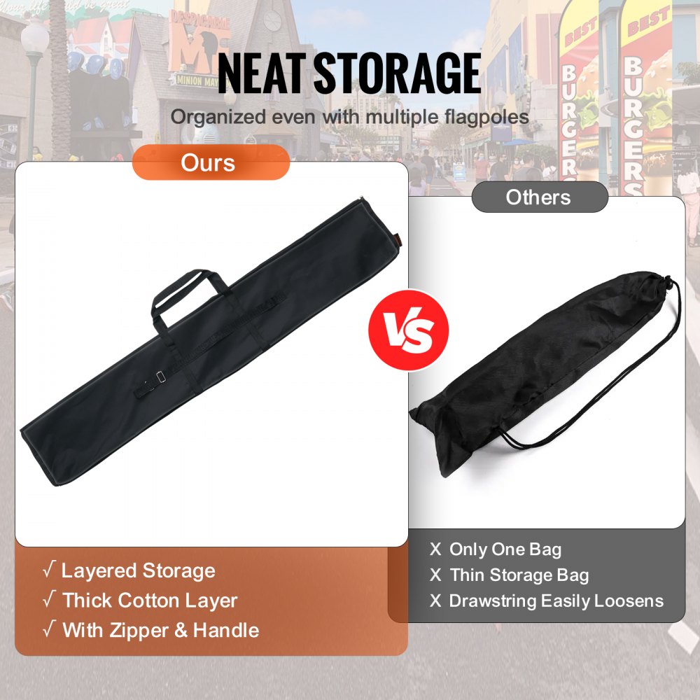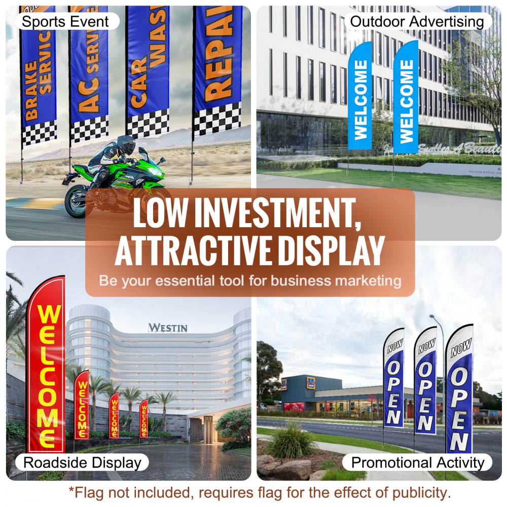 Elevate your advertising game with the VEVOR feather flag pole kit, reaching an impressive height of 163 feet This standout feature guarantees visibility from afar, making it an ideal choice for outdoor events and promotional activities The bright, eye-catching colors further enhance its appeal, ensuring your message grabs the attention of both pedestrians and drivers alike With its thoughtful design emphasizing ease of use, this flagpole is an excellent asset for boosting your brand presence in busy environments.