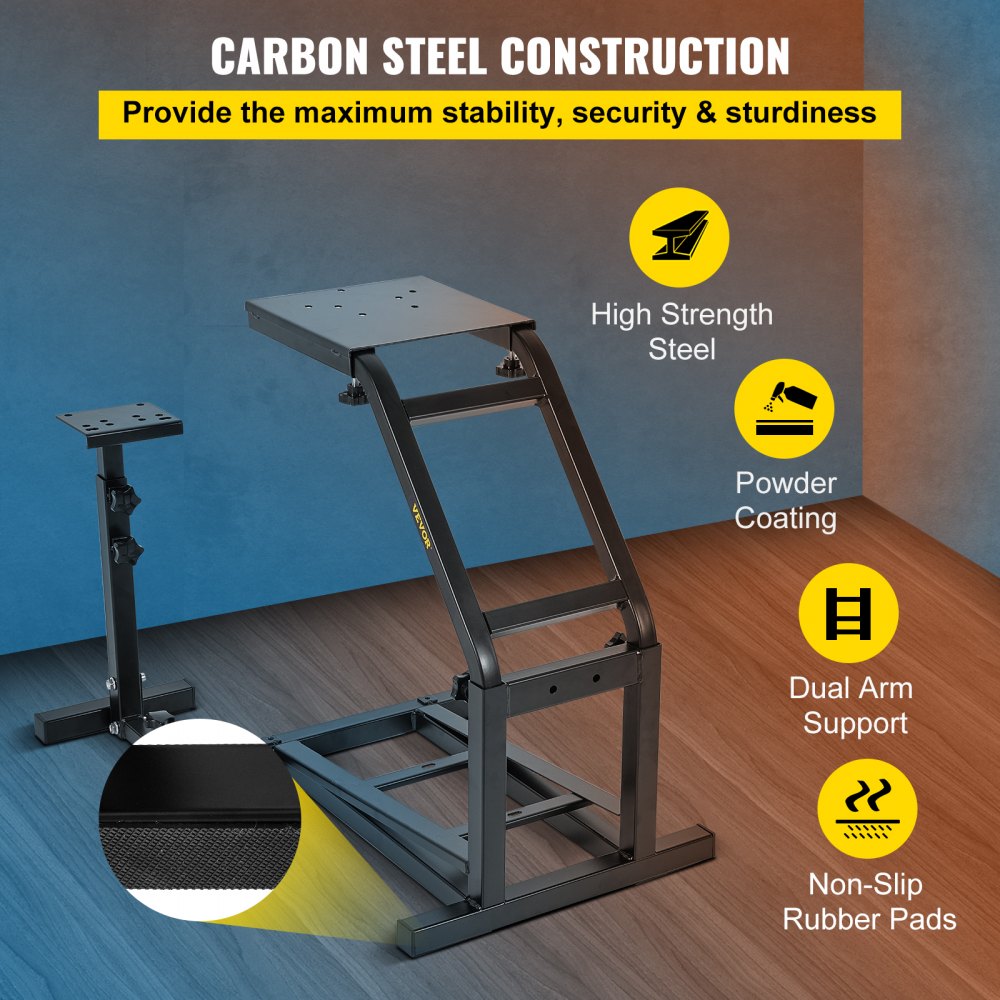 Elevate your racing experience with this versatile racing wheel stand, compatible with all major brands including Logitech, Fanatec, and Mad Catz Crafted from robust carbon steel, it offers full adjustability to accommodate gamers of varying heights, ensuring a personalized and comfortable gaming setup Please note, the racing wheel, shifter, and pedals are not included in the package.