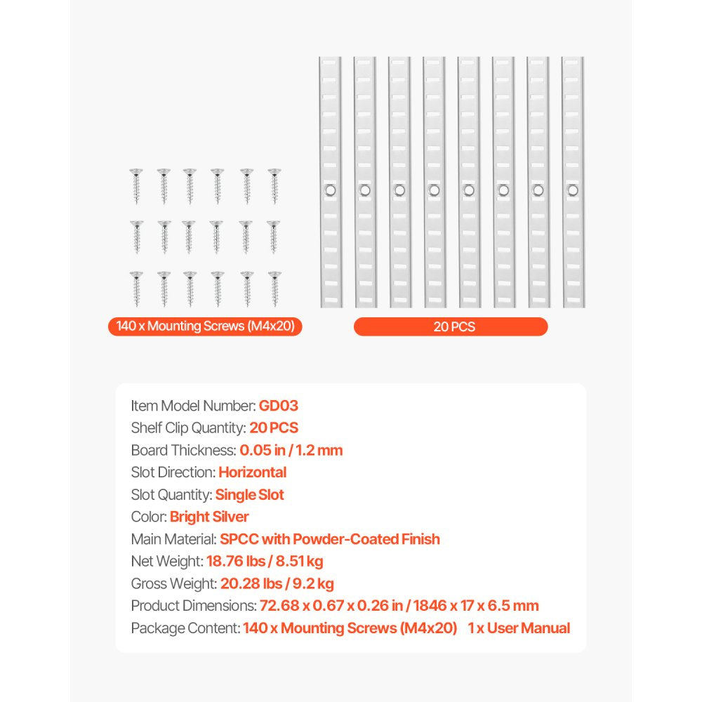 - GD03 - Heavy-Duty 72.68" Adjustable Shelf Rail in SPCC Steel
