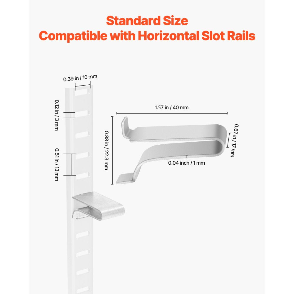 Introduce a new level of organization with these specially-crafted shelf clips, perfect for horizontal slotted rails Installation is a breeze, and the adjustable height feature allows you to customize your shelving to meet various storage needs These clips provide a secure grip, effectively preventing shelves from rocking, which keeps your belongings stable and safe Constructed from high-quality SPCC steel, they are engineered for durability, resisting bending, impacts, and wear, ensuring they last in any environment.