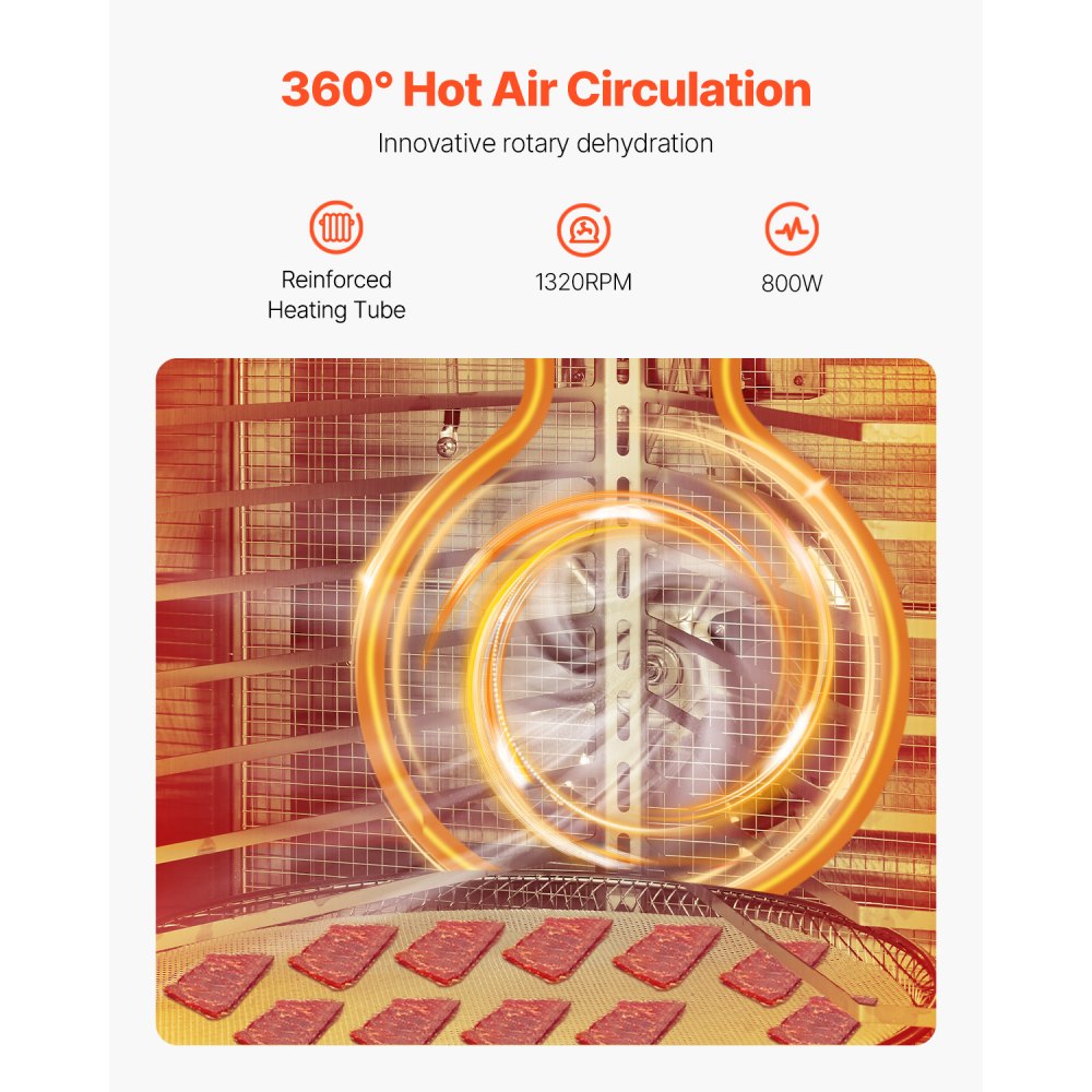 •Innovative rotary dehydration with dual fans for even heat distribution.