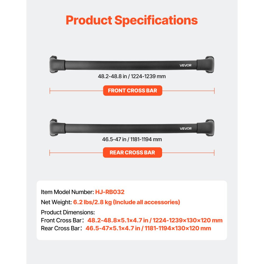 | Rear Cross Bar Dimensions | 46.5-47 x 5.1 x 4.7 inch/1181-1194 x 130 x 120 mm |