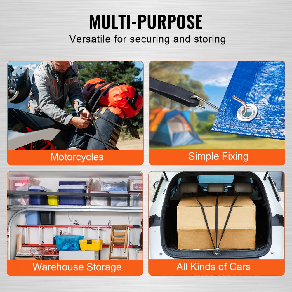 Discover the ideal solution for secure storage and transport with VEVOR Bungee Straps Designed with ultra-long stretch capability, these versatile straps accommodate items of various shapes and sizes, making them a must-have for both organization and safety Their impressive weather resistance ensures performance in tough conditions, guaranteeing durability and stability for a long lifespan