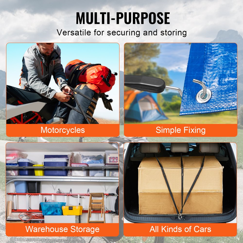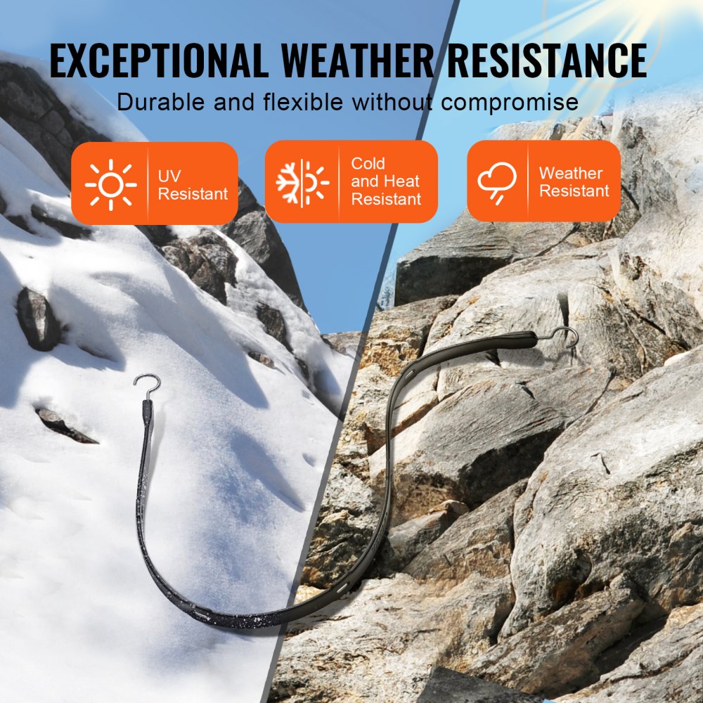 Introducing the VEVOR Bungee Straps, your go-to solution for dependable storage and transportation These ultra-long, stretchable bungee straps are ideal for securing items of various shapes and sizes, making them essential for both easy storage and safe transport Built to withstand extreme weather conditions, these heavy-duty cords ensure longevity and consistent performance throughout their use
