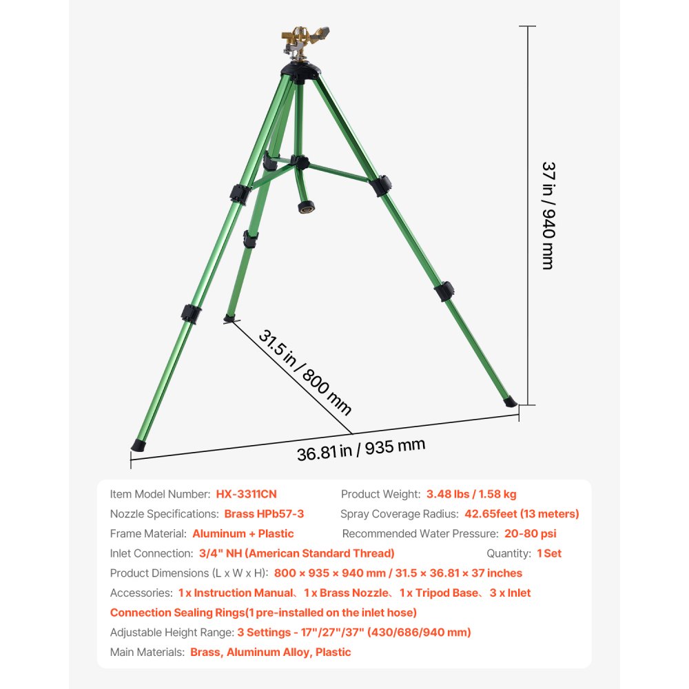 Discover the versatility of this Multi-Functional Impact Tripod Sprinkler, expertly crafted with a high-quality brass head and a stable tripod base Built to withstand the elements, this sprinkler is both waterproof and rust-resistant, ensuring longevity in various conditions It efficiently covers an impressive area of up to 5,539 square feet, making watering large gardens a breeze