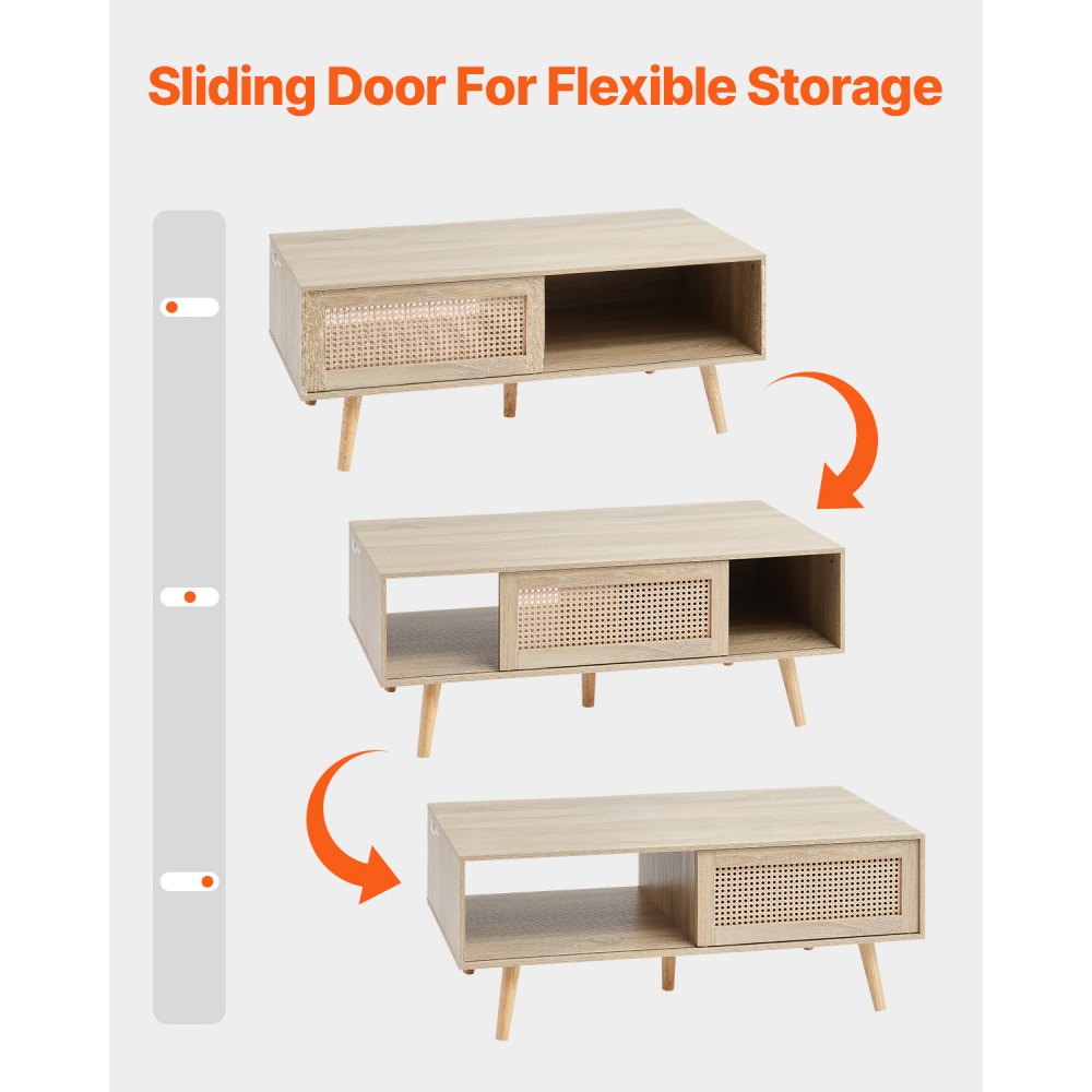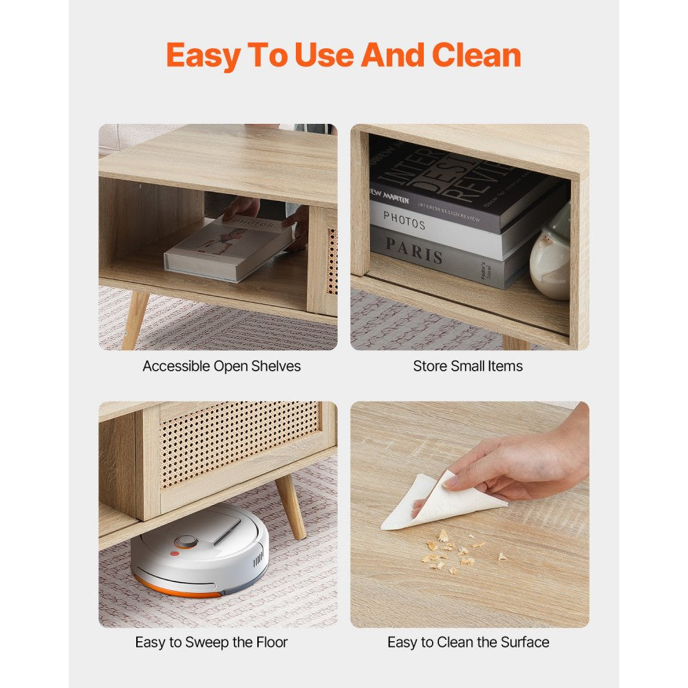 Add a touch of Bohemian charm to your living area with the VEVOR Rattan Coffee Table This elegant piece features a handwoven door, a sturdy MDF surface, and solid wood legs that can support up to 220 lbs With a hidden cabinet and an open shelf, it provides ample storage while keeping your space organized Easy to assemble and maintain, this coffee table is a perfect fit for any room in your home.