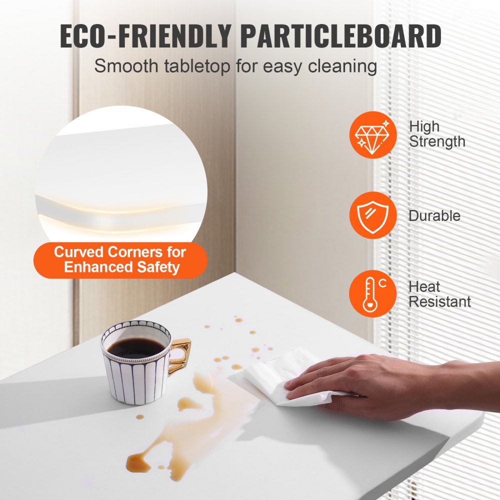 Crafted from a robust carbon steel frame, it can support loads of up to 100 lbs, making it great for a range of activities, from meals to study sessions The frame's corrosion resistance not only enhances its longevity but also simplifies cleaning Additionally, the eco-friendly particleboard and water-resistant surface contribute to its sustainable yet sturdy design, making it a reliable addition to your home.