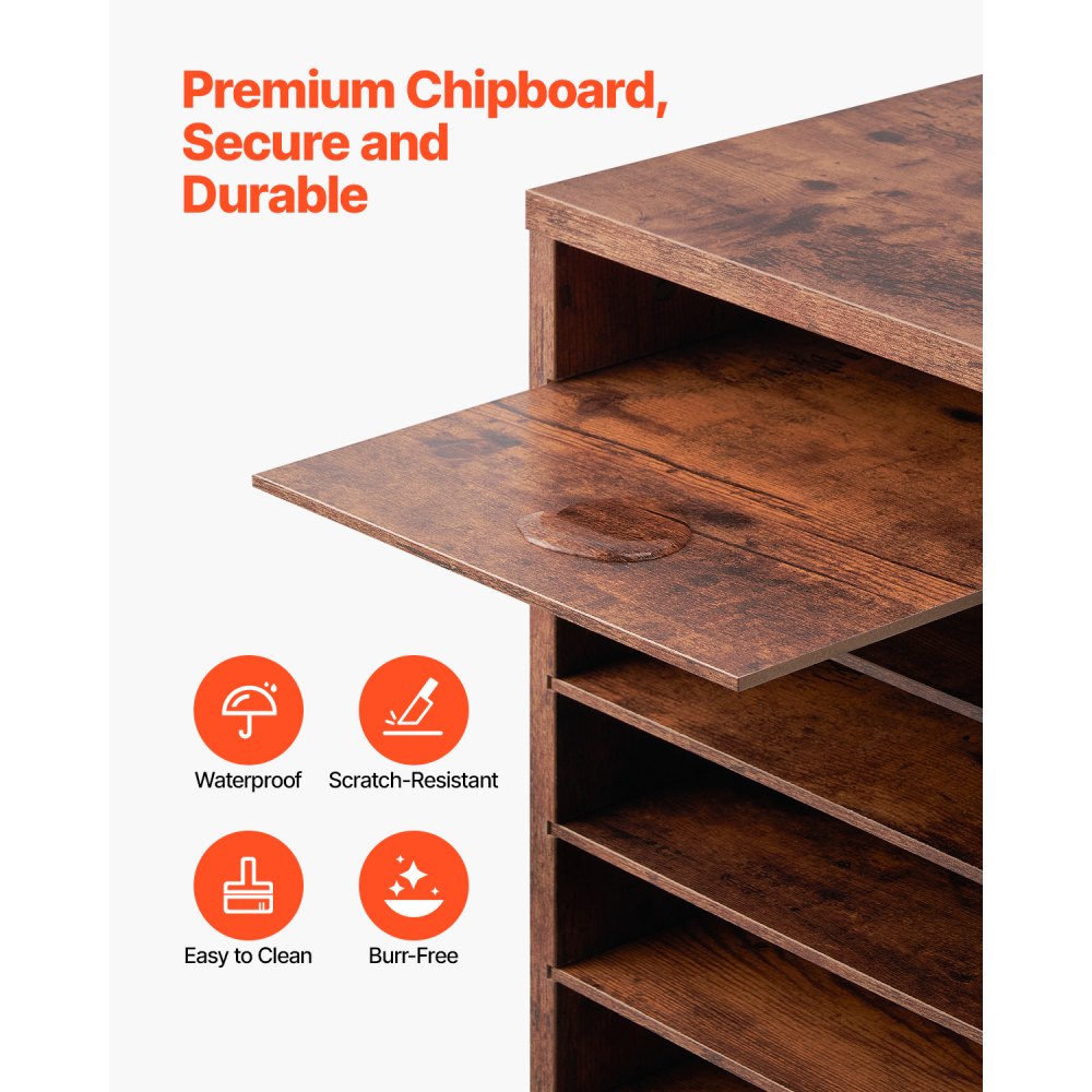 - KL-FC09 - 24-Compartment Literature Organizer, 29x12x24.4 inches, Sturdy Brown Finish