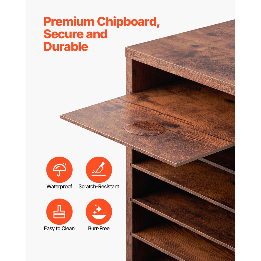 Introducing the VEVOR Literature Organizer, a practical storage solution that boasts 27 compartments arranged in three columns and nine rows, perfect for organizing everything from documents to magazines and books With included labels, you'll be able to quickly find what you need, helping you maintain an orderly workspace effortlessly