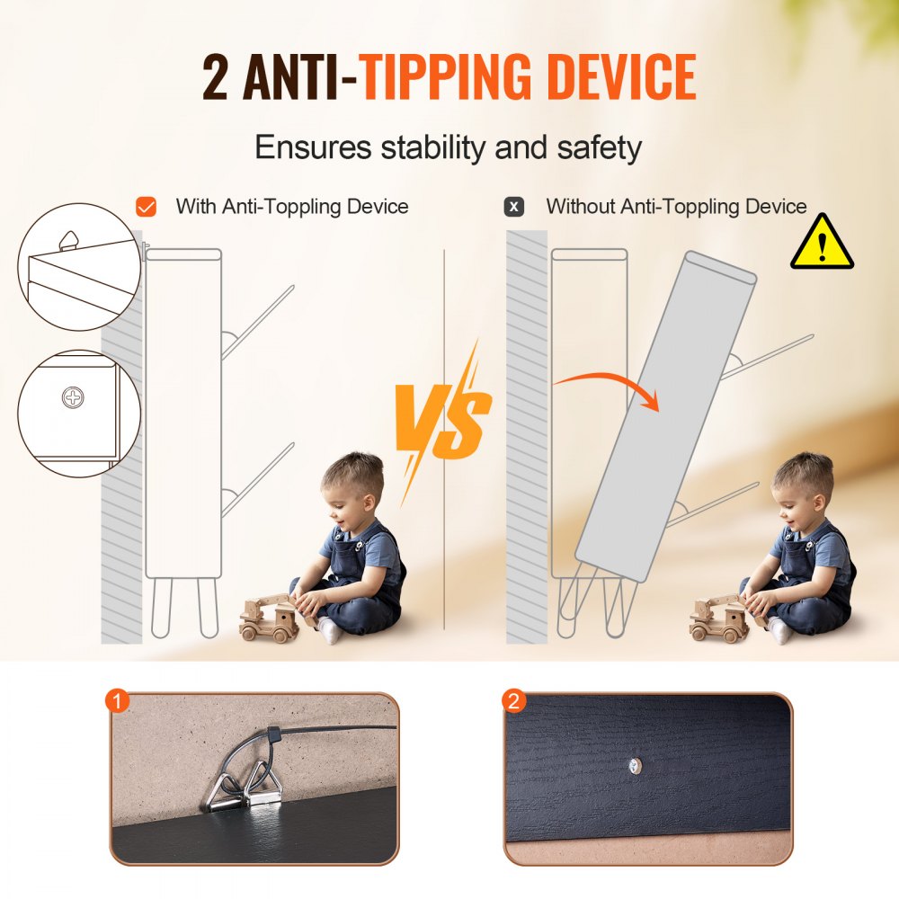 •Straightforward assembly with detailed graphic instructions and a secure anti-tip device.