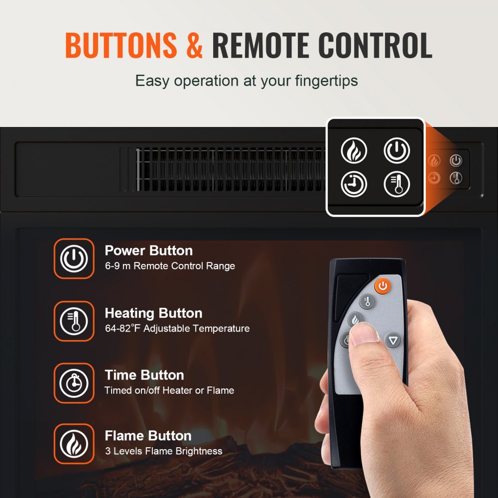 Introducing the VEVOR Fireplace TV Stand, an excellent combination of style and practicality, designed to accommodate televisions up to 50 inches This stand boasts an impressive heating capability of 1400W, effectively warming spaces as large as 323 square feet (4777 BTU) For enhanced convenience, it includes a remote control with a range of 6-9 meters, allowing you to operate it effortlessly You can customize your heating experience with adjustable temperature settings from 64 to 82 degrees Fahrenheit, and take advantage of the timer feature that ranges from 0.