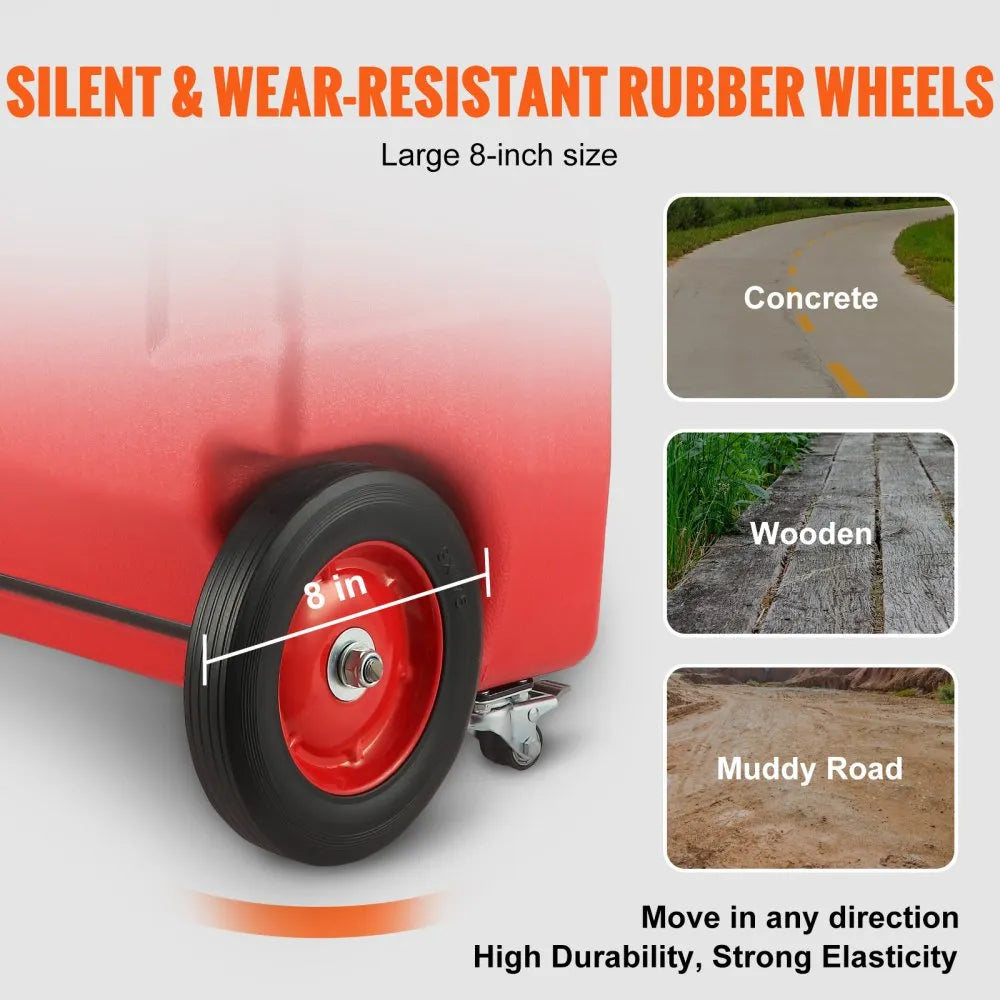 •Portable Fuel Caddy with molded handle and large built-in wheels for easy movement.