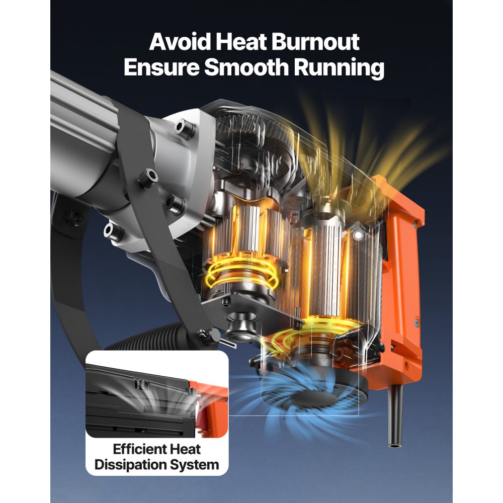 Introducing the VEVOR demolition jack hammer, engineered for heavy-duty applications Whether you're demolishing, trenching, chipping, or creating holes in concrete, this versatile tool is perfect for both residential and commercial projects It excels on challenging surfaces such as concrete, brick, and tile Powered by a robust 2200W motor, this jackhammer delivers reliable performance, making your construction tasks quicker and more efficient.