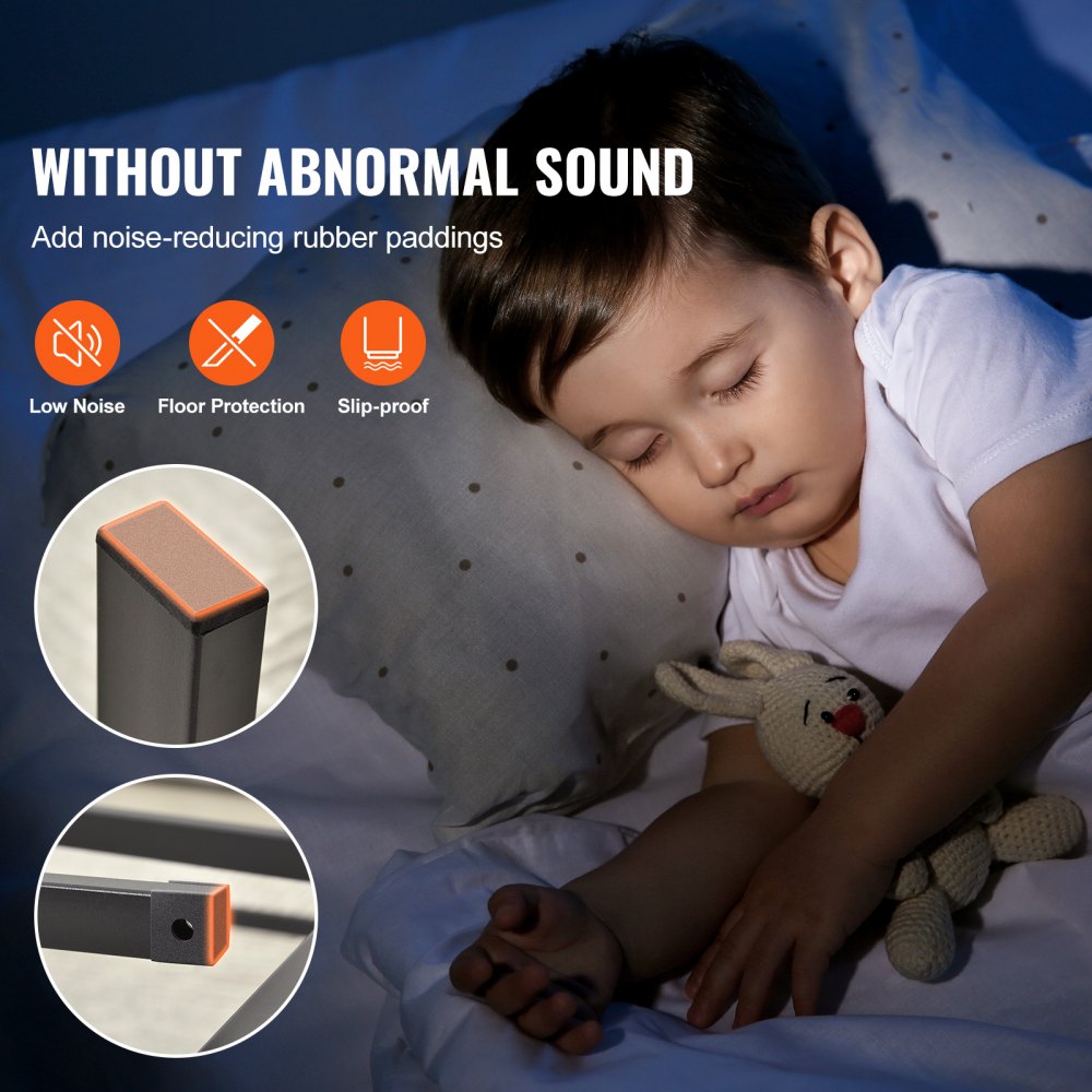 The inclusion of strong steel slats enhances mattress support by ensuring even weight distribution, prolonging the lifespan of your mattress Plus, with generous under-bed space, this frame is a great option for smaller living areas, helping you keep your space organized and functional Versatile enough to fit queen and twin mattresses, the VEVOR bed frame is a practical and stylish addition to any home.