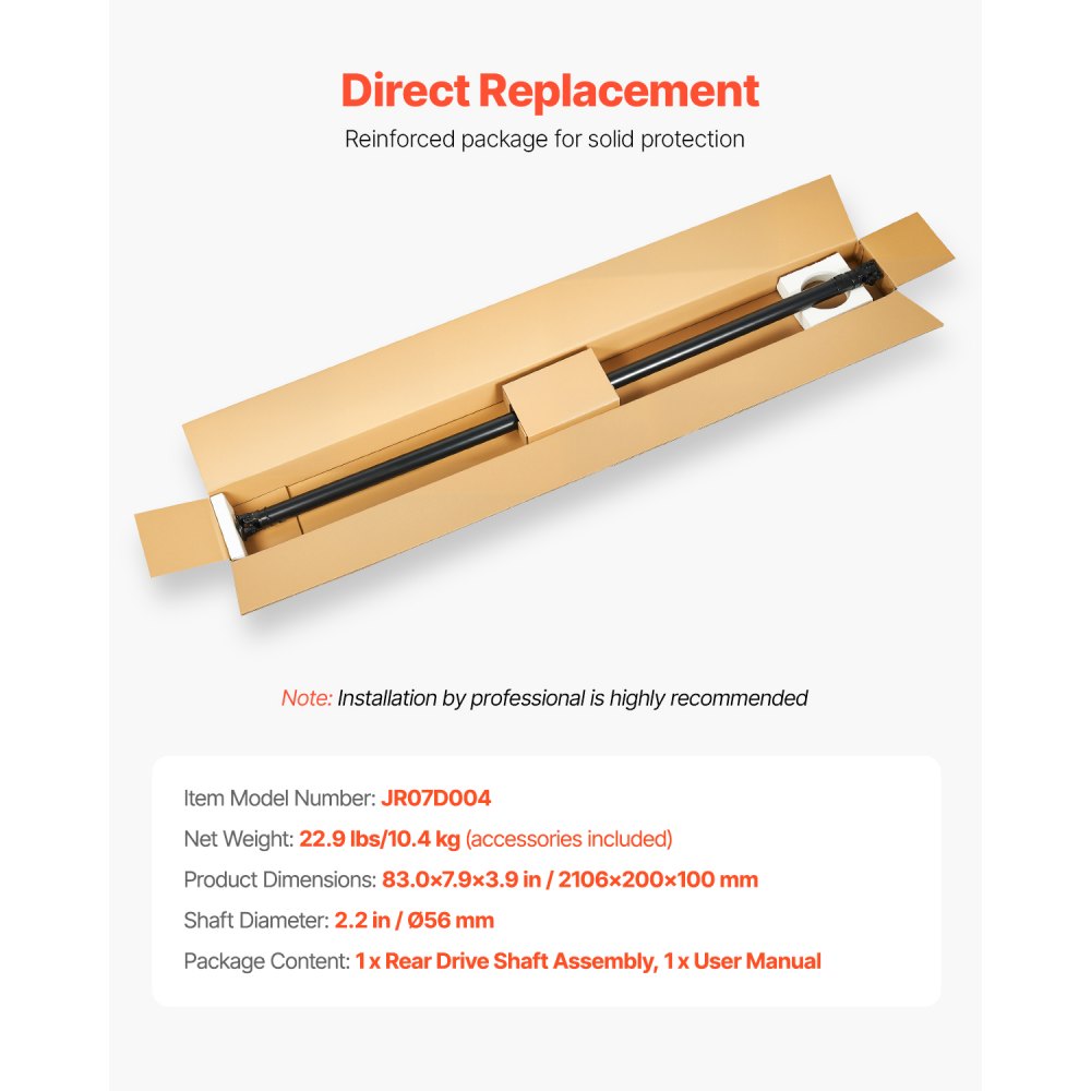 •Easy Installation: The rear drive shaft prop shaft comes fully assembled and ready to install. High-temperature grease is pre-applied to the slip yokes and U-joints to reduce wear and abrasion. And the universal joint ensures effective and stable power transmission..