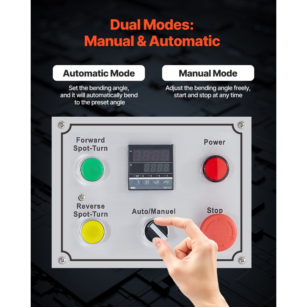 Featuring versatile dual modes – manual and automatic – this bender allows operators to easily switch modes to meet specific task requirements, enhancing efficiency and operational flexibility A convenient foot switch enables hands-free control, reducing operator fatigue while boosting safety and ease of use This tube bender is perfect for a range of industries, making it ideal for steel processing, automotive maintenance, and construction, ensuring seamless and efficient pipe bending with minimal effort.