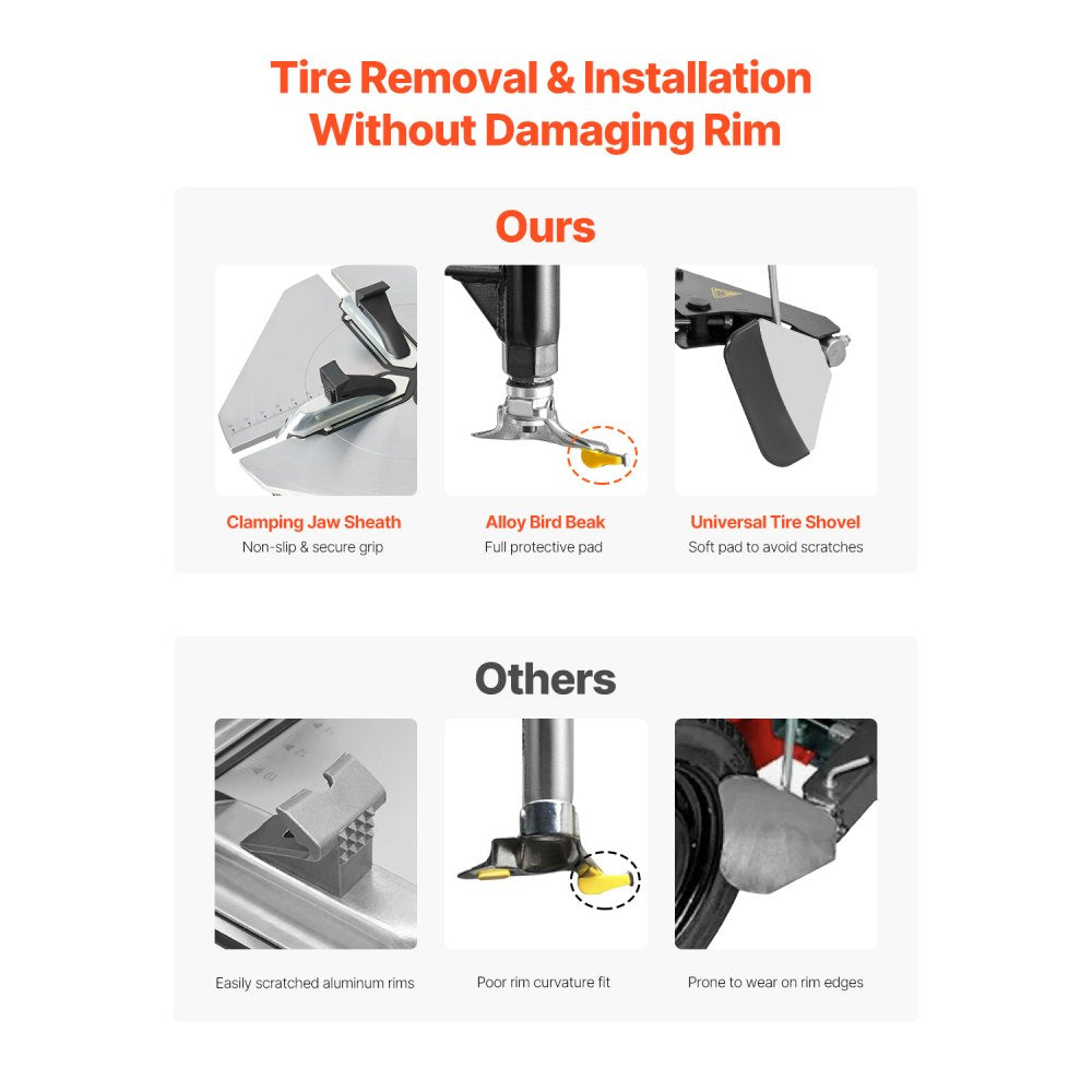 •Powerful Motor: The tire changer machine features a built-in 1.5HP high-power motor, delivering long-lasting and strong power..
