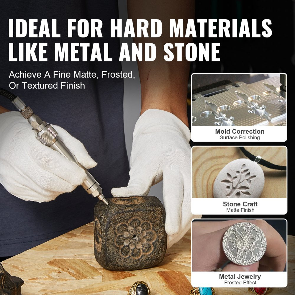 Introducing the VEVOR Pneumatic Engraving Pen, a powerful tool that delivers a rapid impact rate of 11,400 beats per minute This pen features adjustable rotation, ensuring quick and precise engraving for all your projects Its lightweight and compact design makes it easy to handle, even during extended use Crafted with a sturdy metal body, it effectively dissipates heat, allowing you to tackle a wide range of DIY endeavors with confidence.