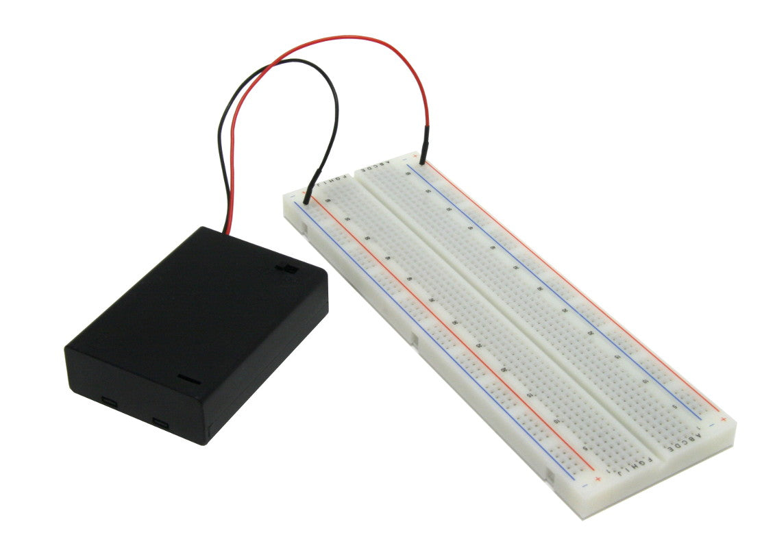 The machined male breadboard pins with strain relief heatshrink tubing provide a reliable long-lasting connection (as opposed to tinned wires that fatigue and break) The battery box holds 3 AA batteries to provide 45 Volt power for your projects A built-in slideswitch turns power on and off The battery box is best for circuits that don’t need an exact supply voltage The voltage will go down from 4.