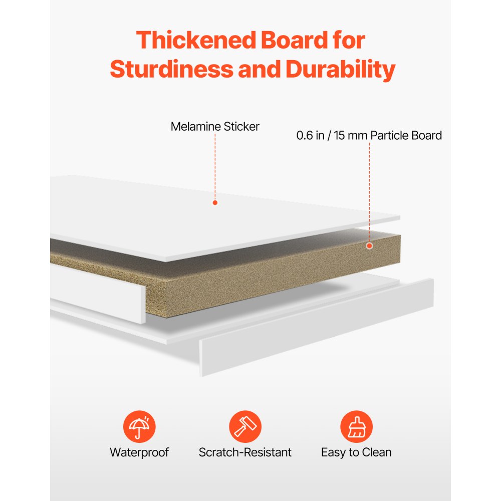Its smooth surface is not only waterproof but also resistant to scratches, ensuring it withstands the rigors of a busy environment The assembly process is simple, thanks to the included instructions, allowing you to set it up swiftly and keep your workspace clutter-free For added safety, it comes with an anti-tip mechanism for wall attachment and non-slip pads that enhance stability, preventing any tipping or damage to your desk.