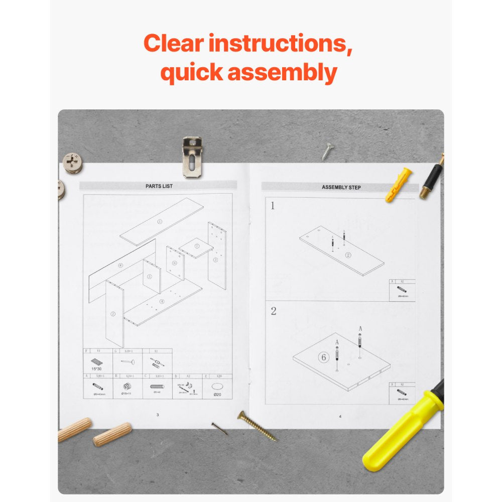 - KLBS-08 - 37.4" VEVOR Bookshelf with Compartments for Organized Desks