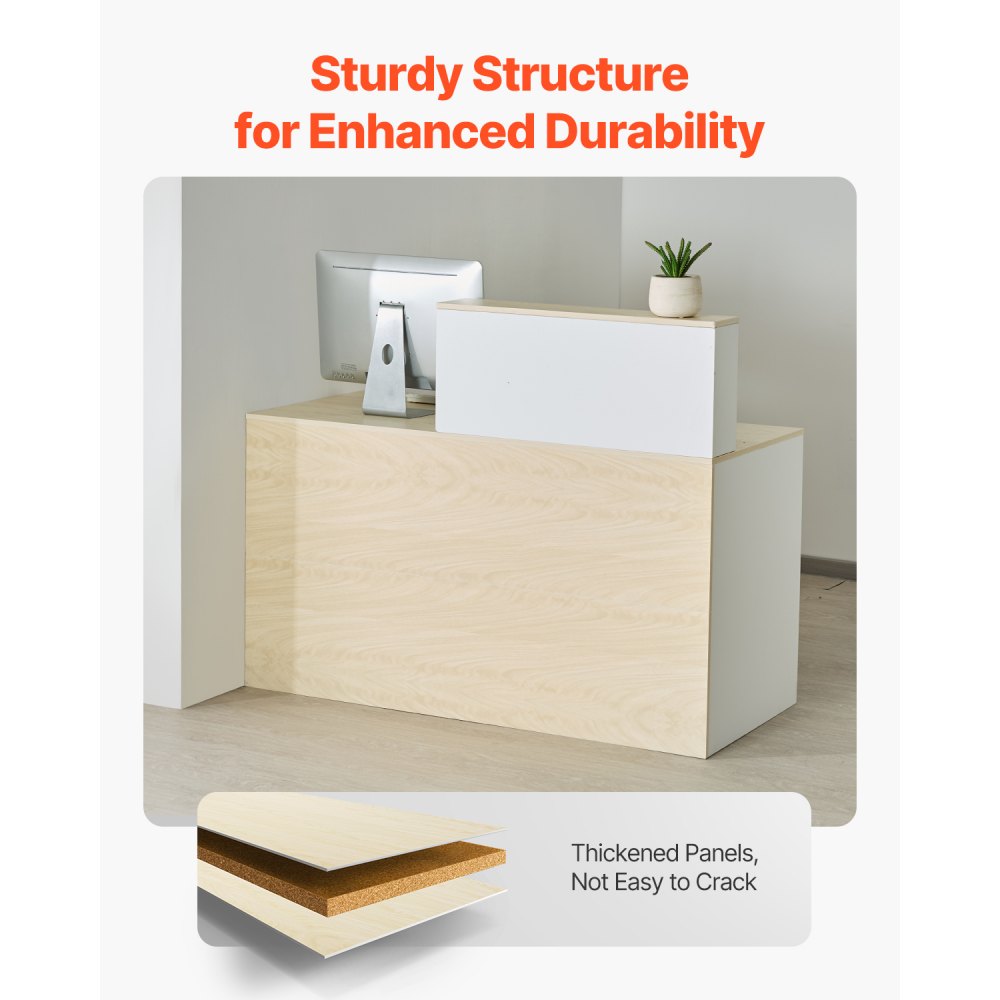 Discover the perfect blend of functionality and style with this reception desk, expertly crafted from durable and waterproof MDF Its solid construction ensures privacy and security, thanks to a lockable drawer Ample storage is available, featuring both a spacious drawer and a convenient cabinet Designed for easy assembly, this desk is versatile enough to complement a variety of business environments with its elegant and practical aesthetic.