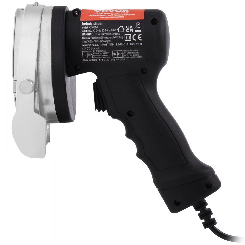 Introducing the VEVOR Electric Shawarma Knife, a must-have tool for catering to kebab enthusiasts in both commercial and home kitchens This knife ensures effortless and uniform slicing of a variety of meats, making it perfect for anyone from novice cooks to professional chefs Crafted for longevity, its robust construction stands up to daily demands