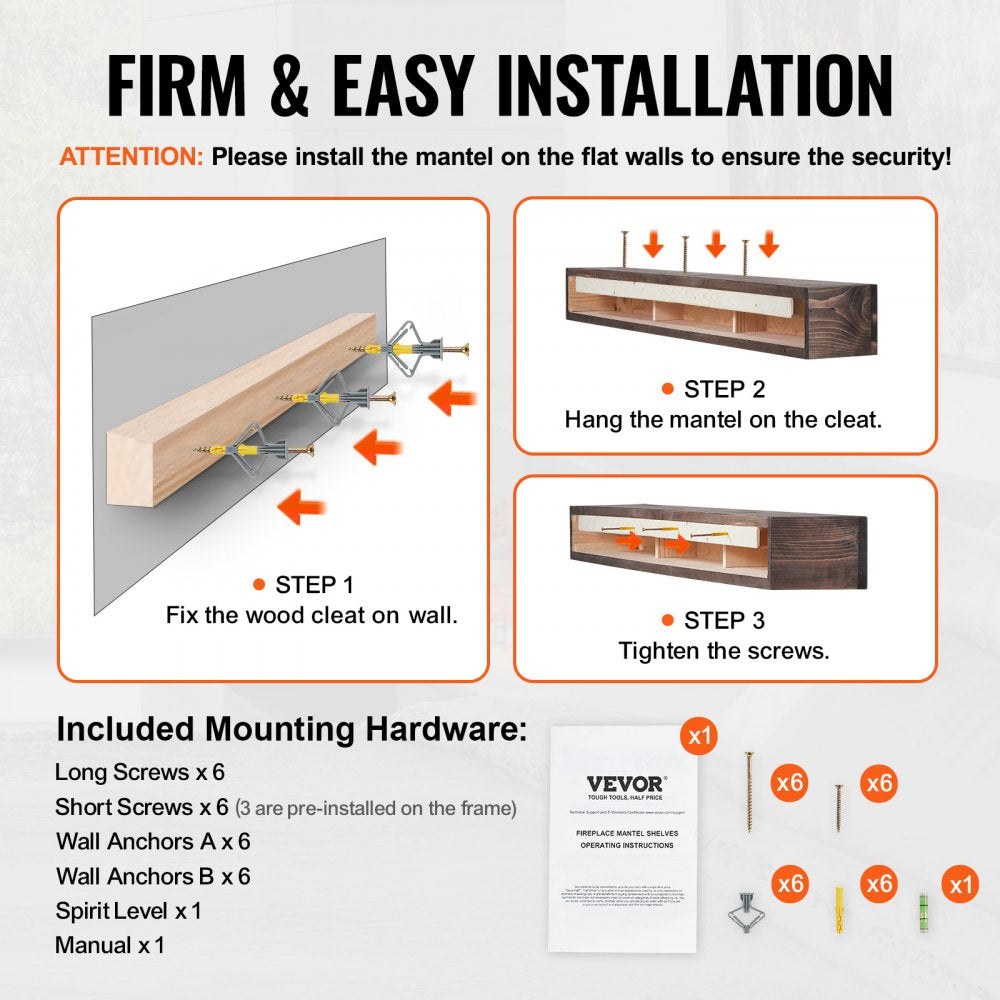Enhance your home decor with this stunning floating mantel shelf, crafted to infuse natural charm and a rustic touch into your space This shelf provides ample room for displaying your favorite decor pieces, making it a versatile and stylish centerpiece that creates a warm and inviting atmosphere Constructed from authentic white pine wood, it merges elegance with robust durability For easy installation, simply mount it on flat walls, and all necessary hardware is included to assist you with a hassle-free setup.