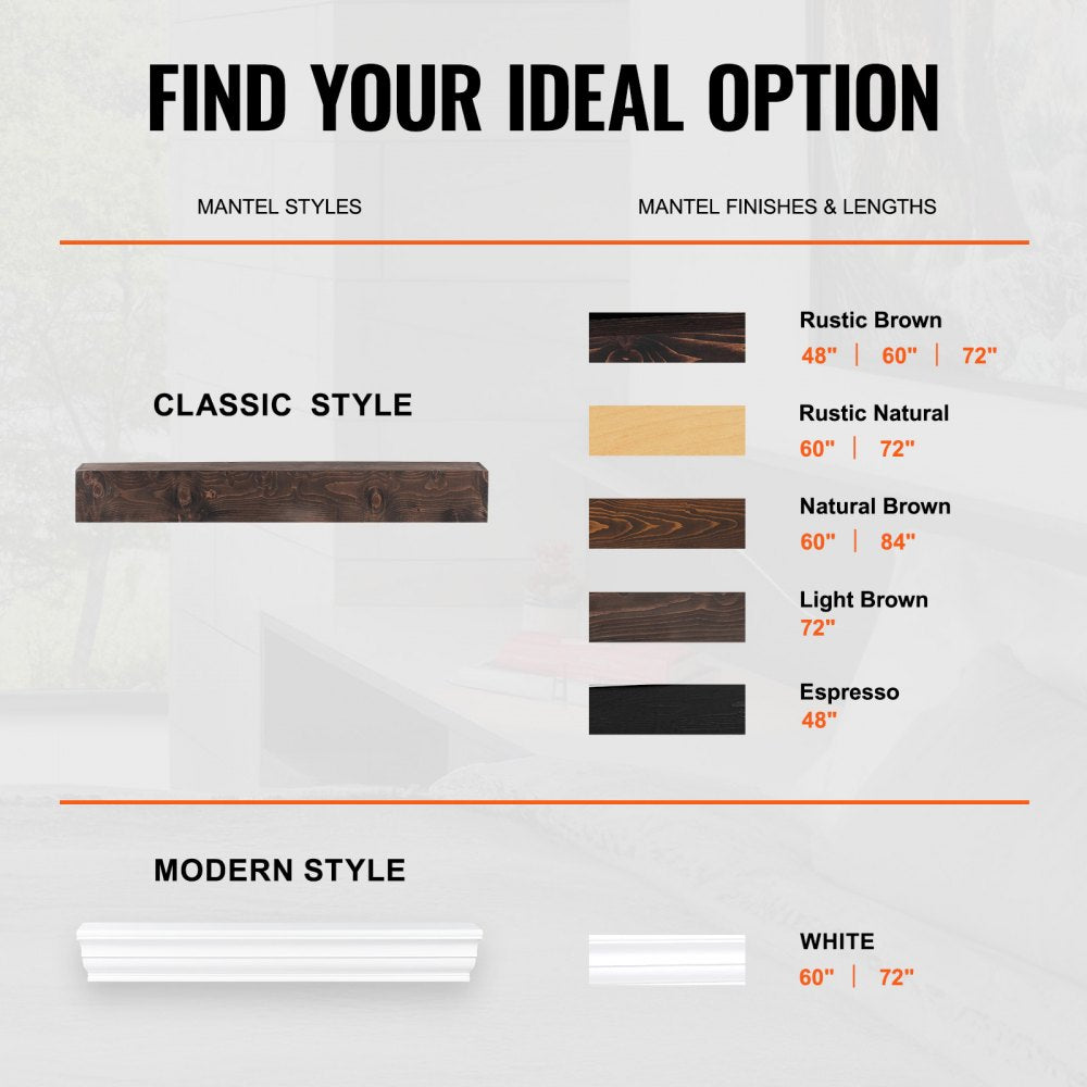 - LB72-8-5 - 72" Rustic White Pine Floating Mantel Shelf for Home Décor