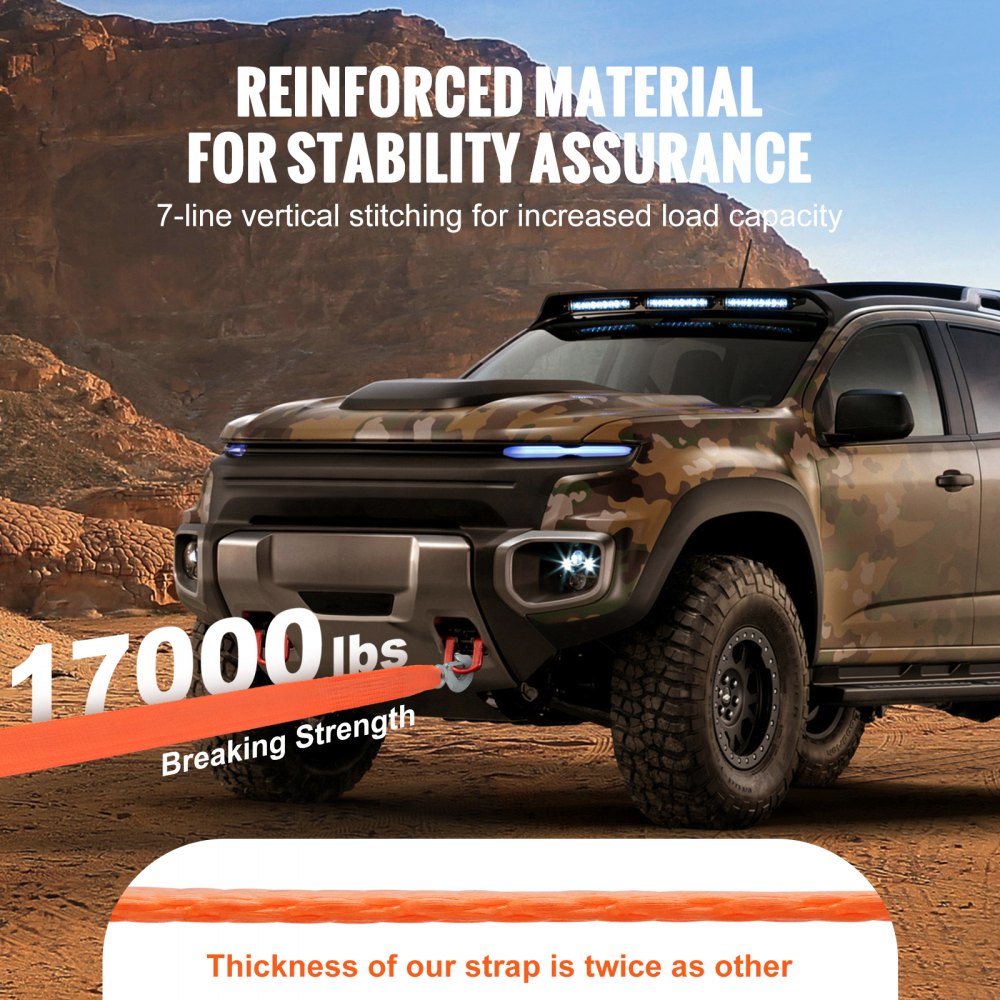 •Heavy-Duty Vehicle Tow Strap with a robust 17,000 lbs capacity.
