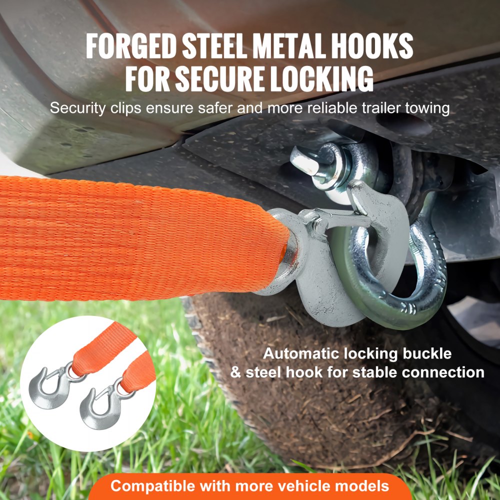 Stay prepared for any roadside emergency with the VEVOR ATV tow strap, featuring a bright orange hue for easy visibility in various lighting conditions This crucial safety accessory reduces accident risks by ensuring other drivers are alerted to your situation, particularly when visibility is limited due to weather or darkness
