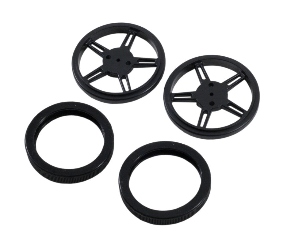 •Two 60mm (2.35") plastic wheels with grippy rubber treads.
