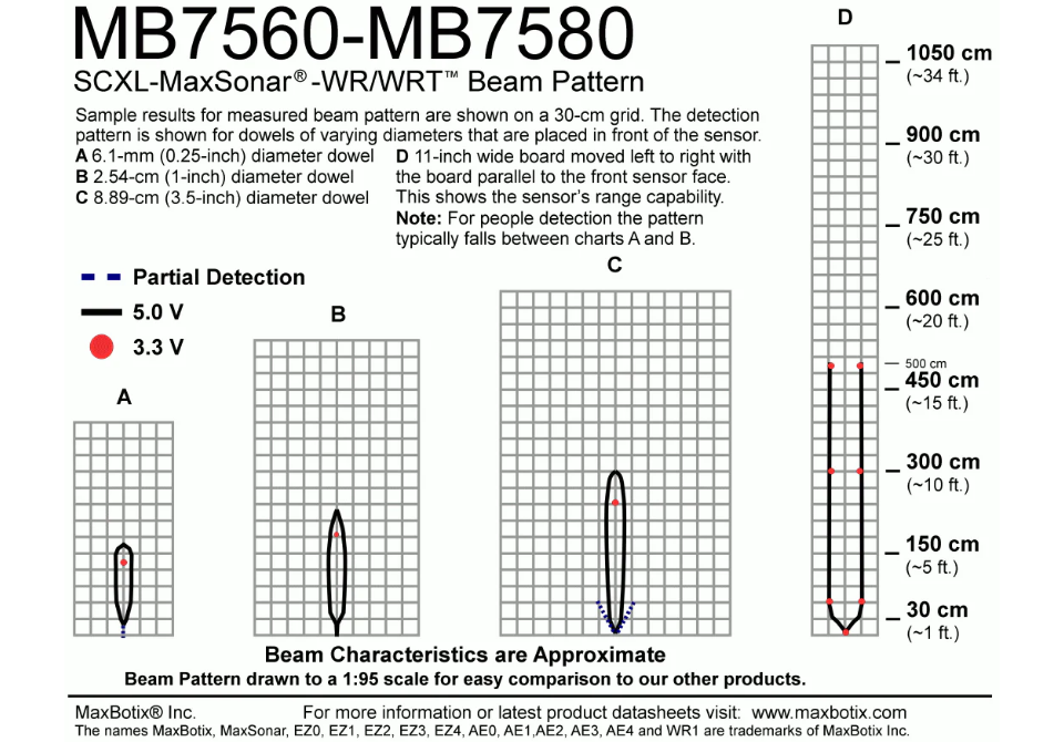 Ranges from 300mm to 5000mm with a 06Hz read rate Pulse-width, analog voltage, and RS232 serial Reports range to closest target.