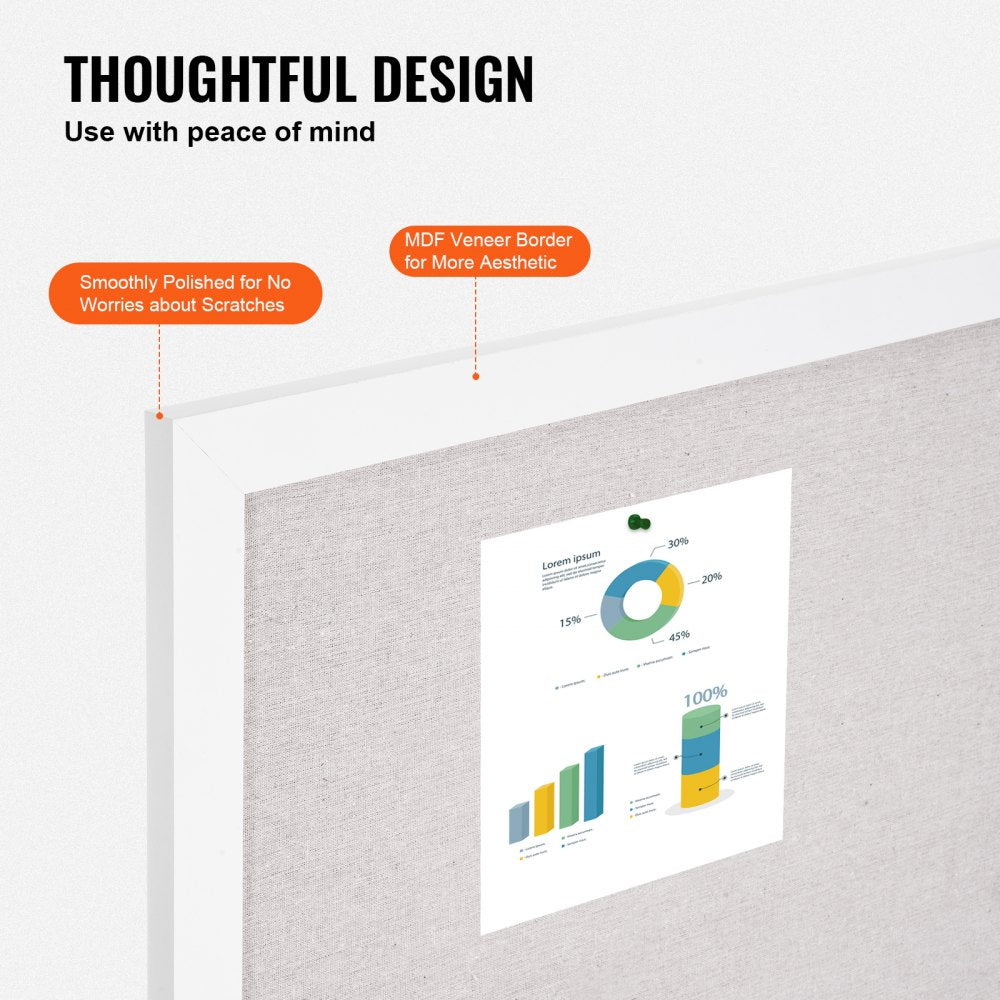 Adorned with a stylish white medium-density fiberboard frame, this bulletin board combines aesthetic appeal with functional toughness Safety is prioritized with its rounded, scratch-resistant corners, making it suitable for various settings