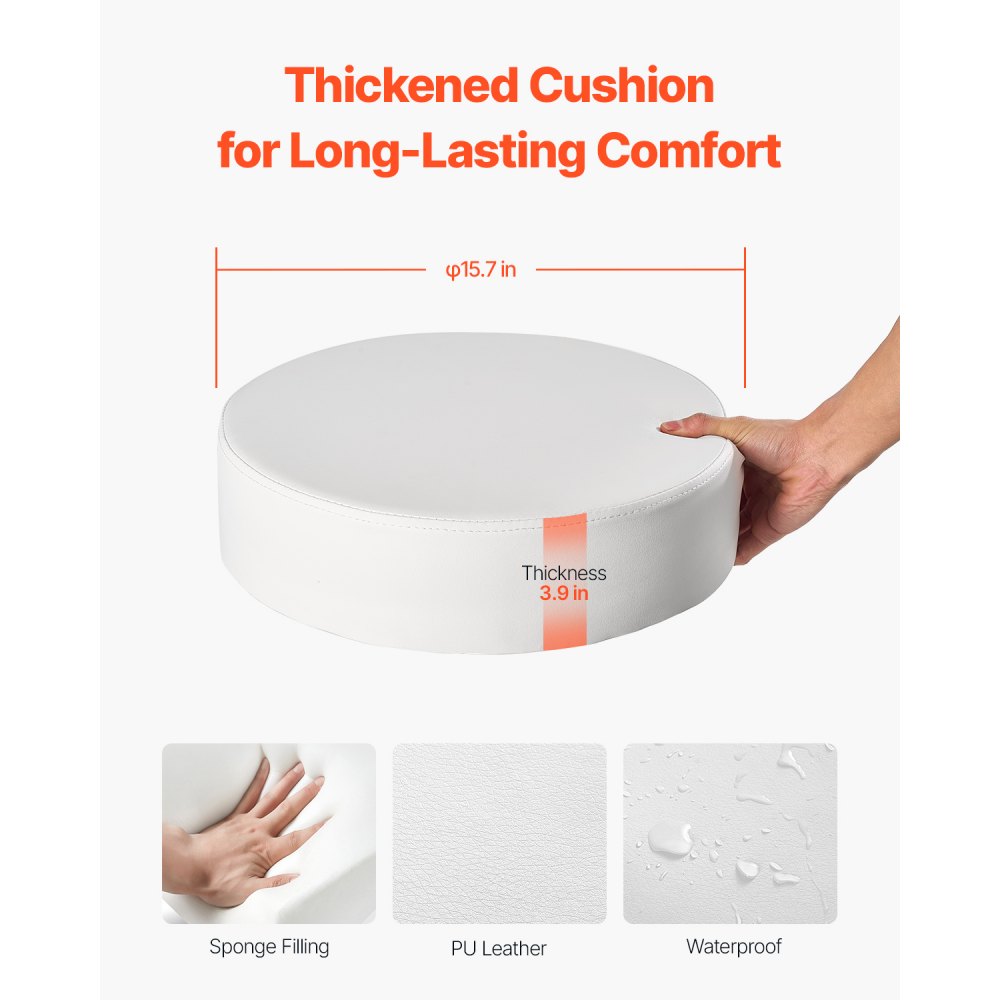 Experience ultimate comfort with this round rolling stool, featuring a plush 39-inch thick cushion that ensures a relaxing seating experience Engineered to support up to 450 lbs, it includes an SGS-certified hydraulic lift for reliable safety Enjoy the convenience of height adjustment and 360-degree swivel functionality, making it an ideal choice for clinics, salons, and laboratories.