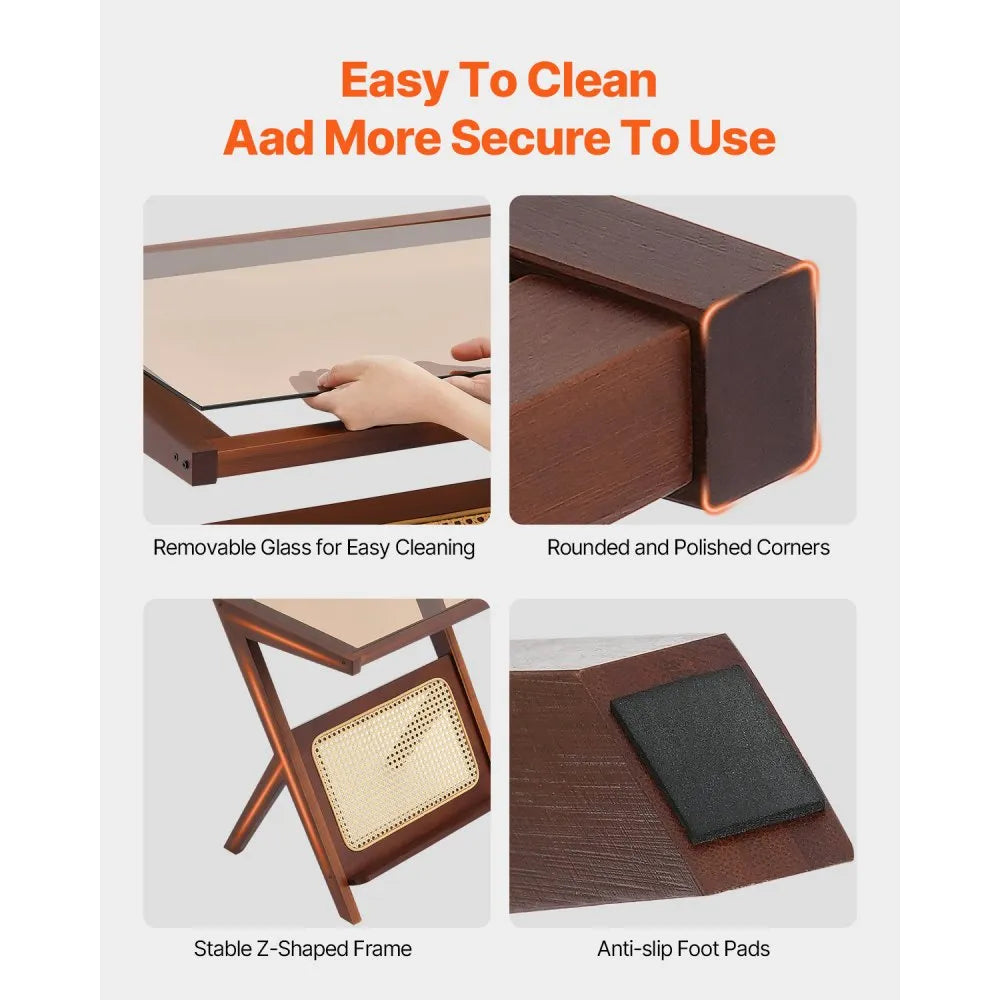 Introducing the VEVOR Z-shaped rattan coffee table, where contemporary style meets Bohemian charm This stunning piece showcases a tempered glass top and a robust design that can hold up to 40 lbs, making it ideal for daily use Crafted for effortless assembly and easy upkeep, this versatile coffee table complements any room effortlessly.
