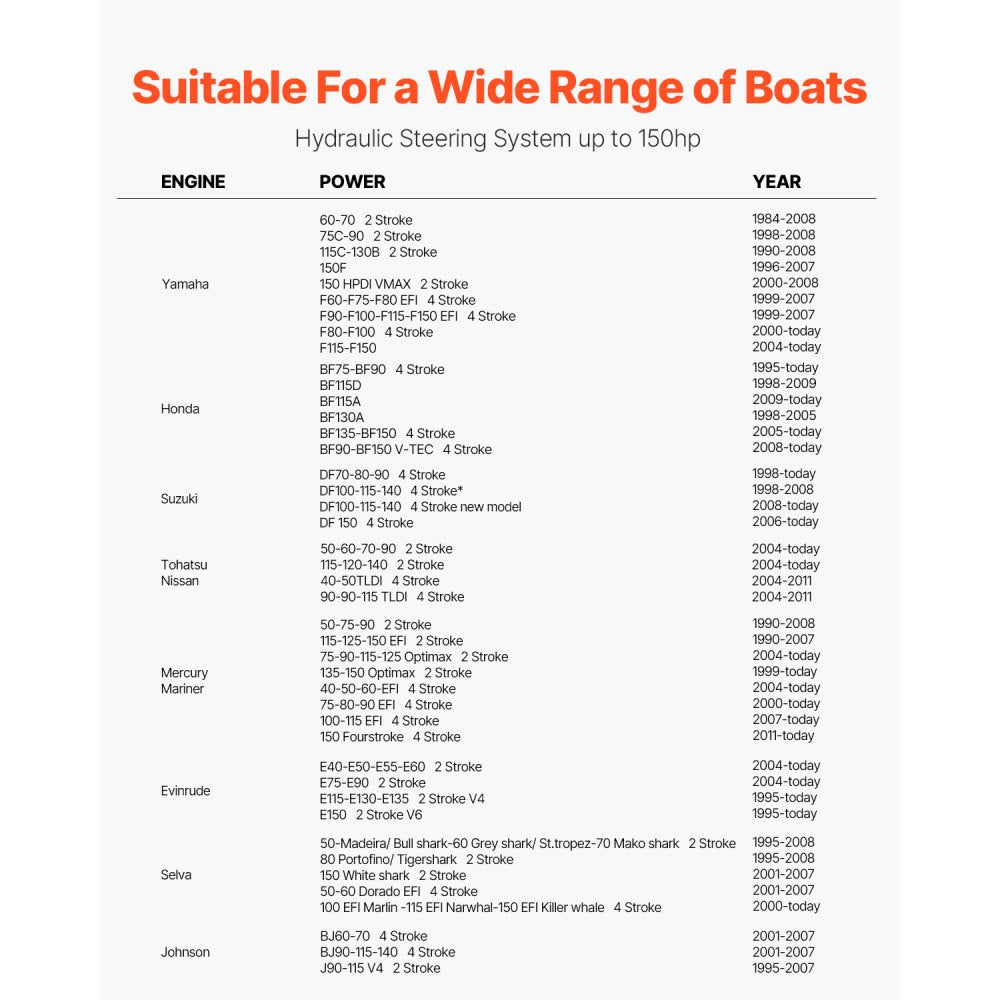 - HSX-150HP - VEVOR Hydraulic Steering Kit for Precision Boat Control