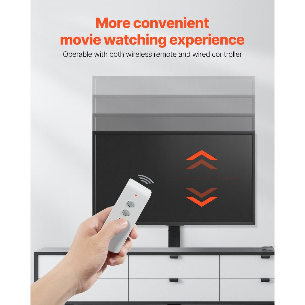 Transform your viewing experience with this motorized TV lift stand, designed to discreetly hide your television when not in use The unit features a remote control for effortless operation, allowing you to smoothly raise or lower your TV to achieve the perfect viewing angle in any setting.