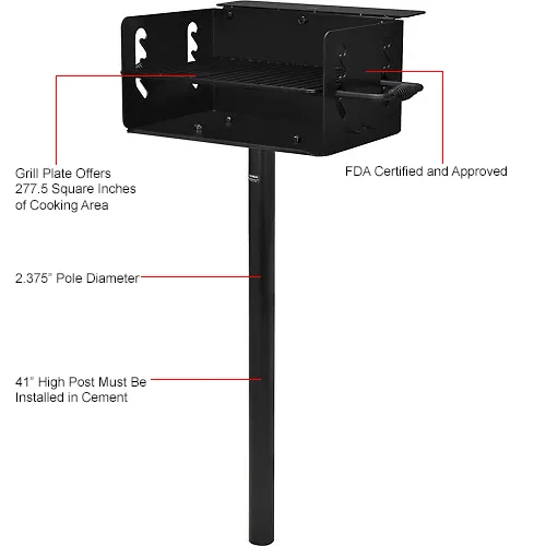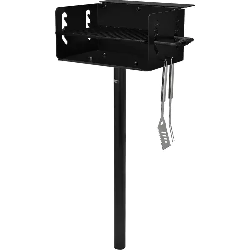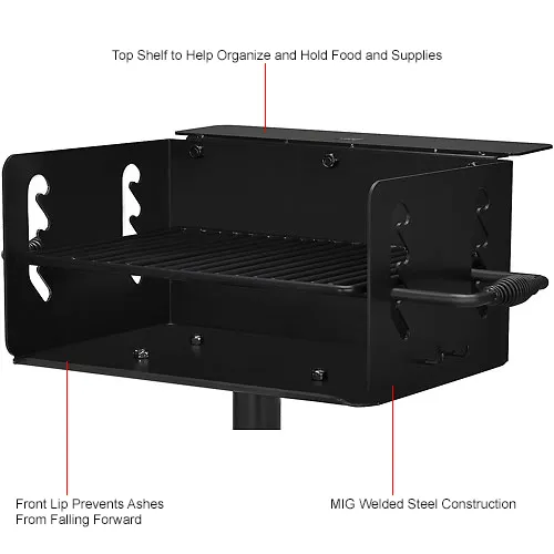 The Global Industrial™ Park Grill Charcoal BBQ In-Ground is great for commercial outdoor environments. Made using heavy gauge metal, this grill offers 277.5 square inches of cooking area on a high heat black enamel finish. Cooking grate has cool-coil handles that can be adjusted at 4 levels.Z