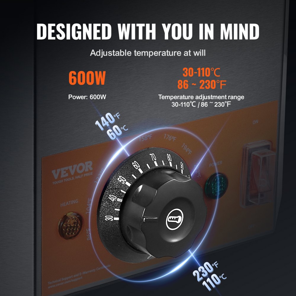 •Precision Temperature Control: The hot fudge warmer offers temperature settings from 86 ~ 230℉ (30-110℃) with a powerful 600W heating element..