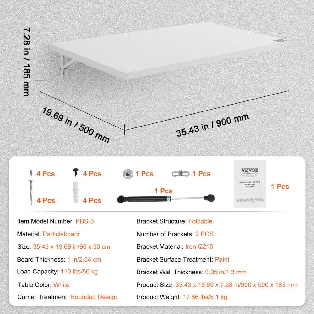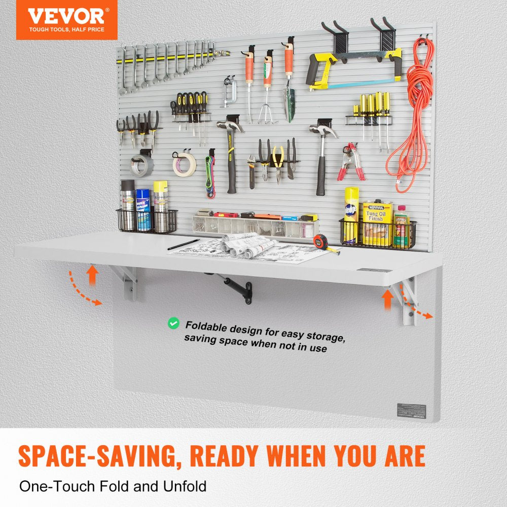 Maximize your space with the VEVOR wall-mounted folding table, perfect for compact living environments This versatile table unfolds effortlessly, providing an immediate surface for dining, working, or showcasing decor, and can be conveniently folded away against the wall when not in use It’s a stellar solution for small apartments, cozy rooms, home offices, and compact kitchens With a sturdy capacity to support up to 110 lbs, this drop-leaf table is made from high-quality materials, ensuring both reliability and a chic addition to your interior design.