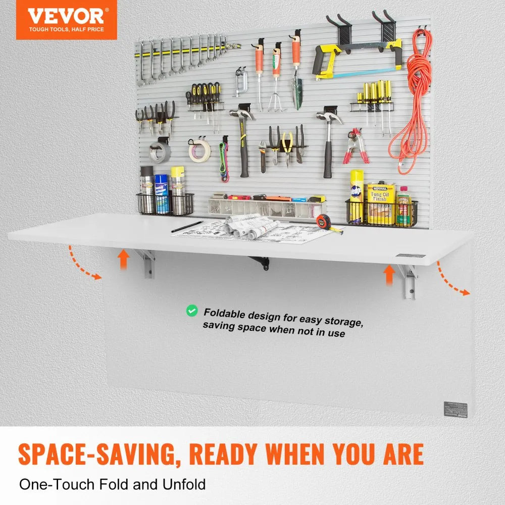 Maximize your space with the VEVOR wall-mounted folding table, designed for ultimate convenience and efficiency This versatile table quickly folds up or down, making it an excellent solution for compact living areas Whether you need a workspace or a display area, it’s ready in moments Safety is a priority with its slow-closing brackets that prevent pinching during operation, providing peace of mind—especially in households with children or pets.